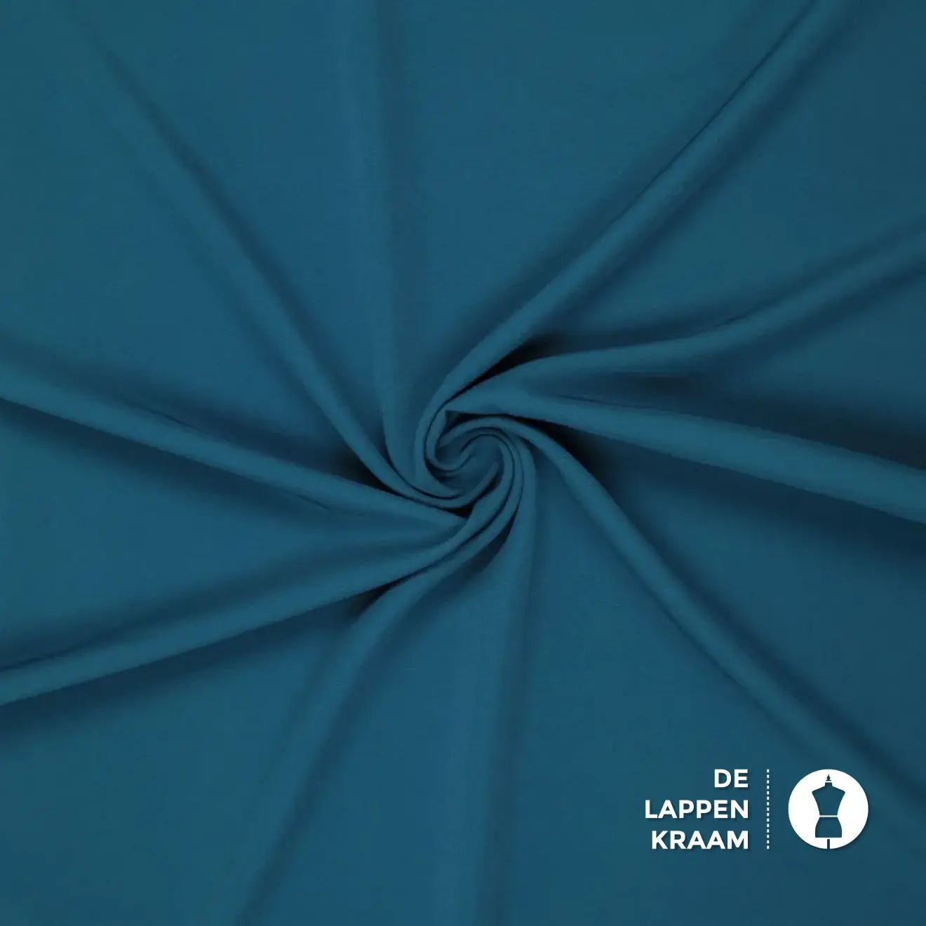 Soepelvallende stof in medium dikke kwaliteit in de kleur petrol. Prima basic voor een prima prijs! Laat je niet misleiden door de ouderwetse term "terlenka" , deze stof is superhip... Lees meer