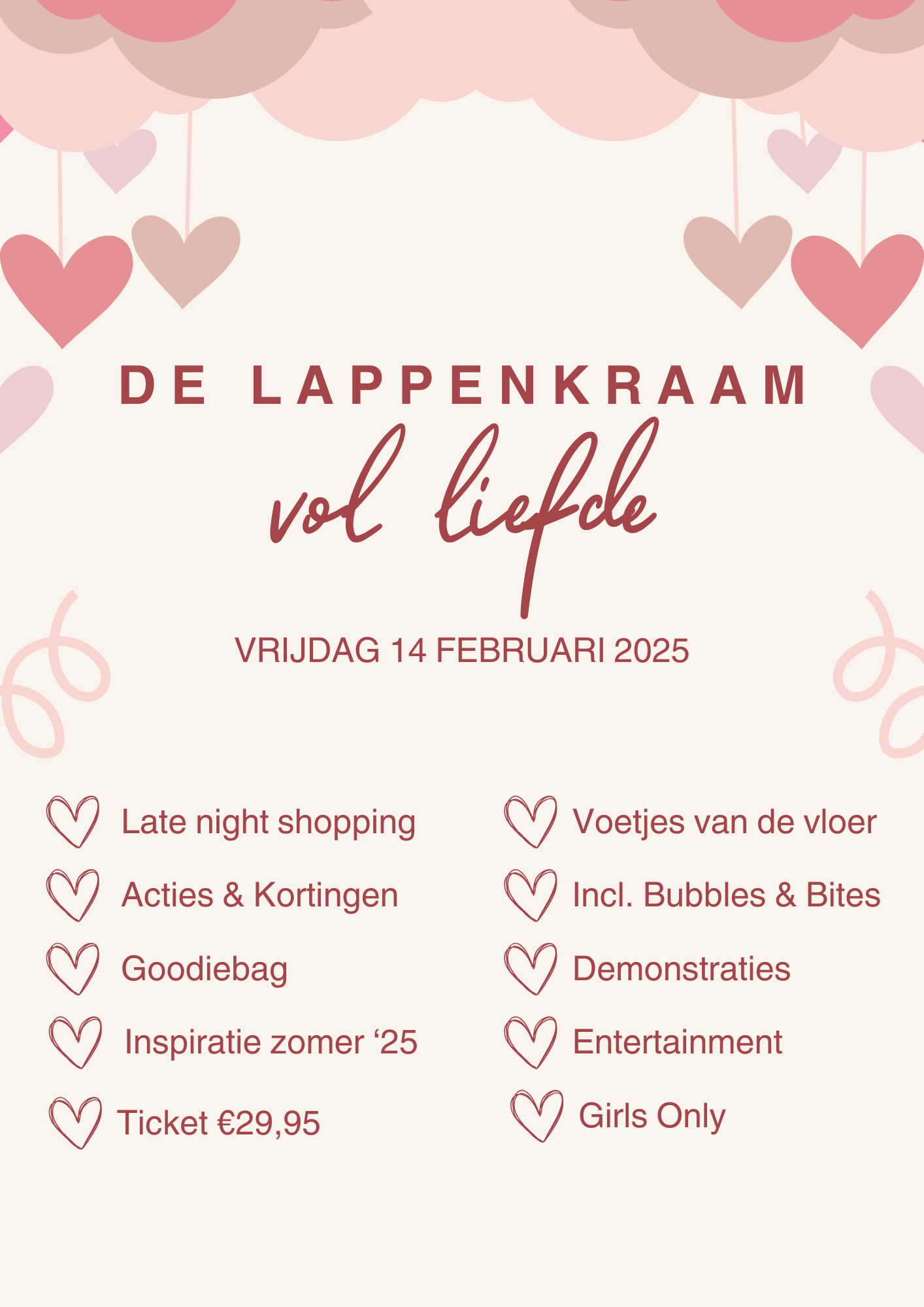 We zouden het heel leuk vinden om iedereen in een zelfgemaakte outfit te zien. Daarbij willen we helemaal in het thema liefde blijven. Daarom is de dresscode: A touch of pink or red.