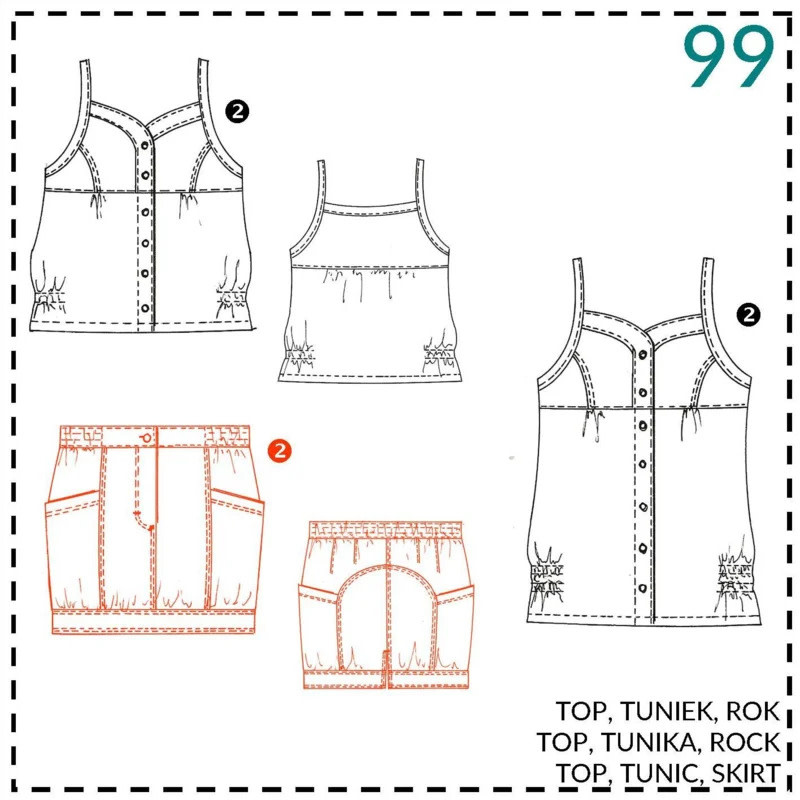 Abacadabra Naaipatroon Top, tuniek en rok