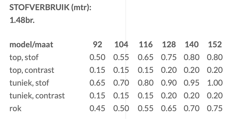 Te maken in maat 92 tm 152