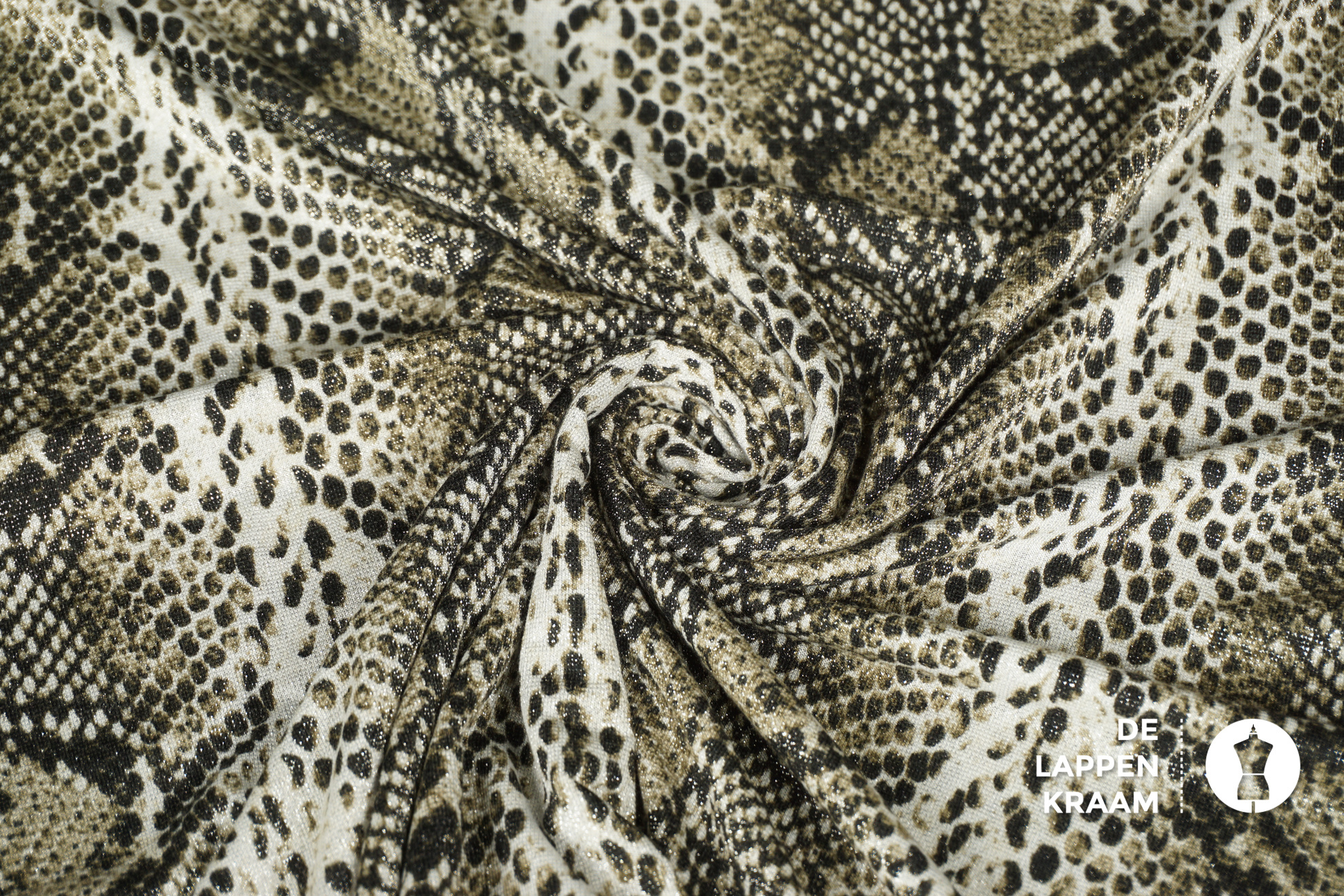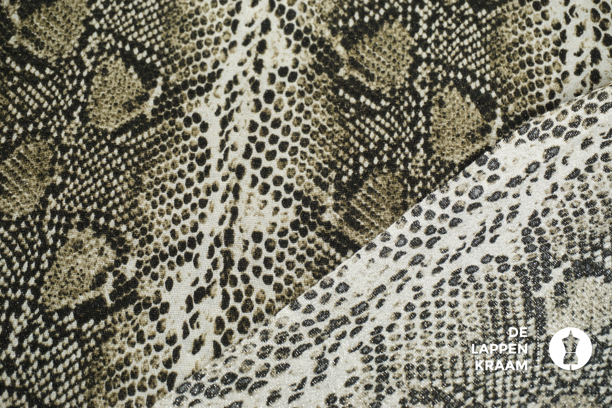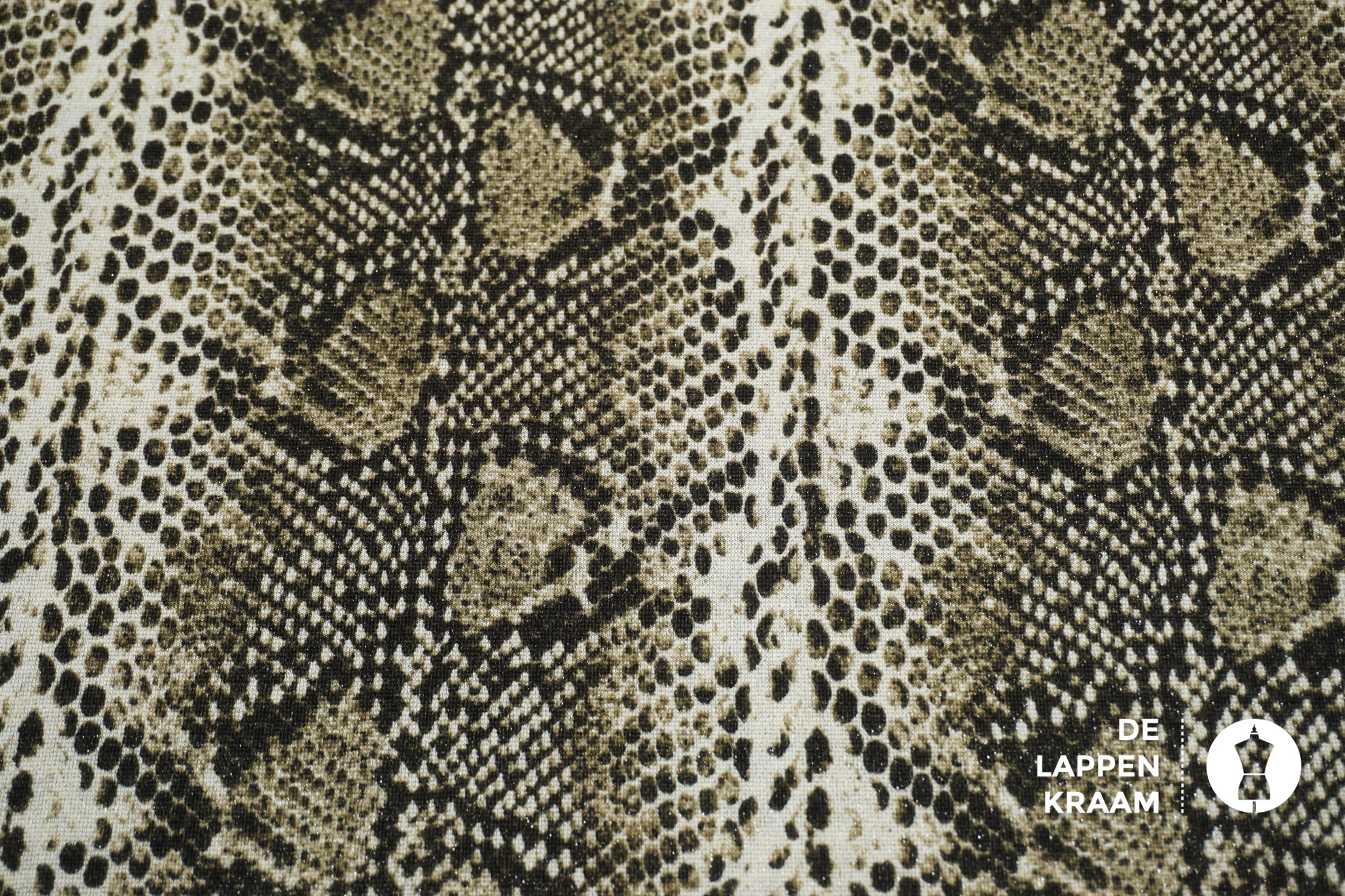 SALE Tricot stof in groene slangenprint met lurex