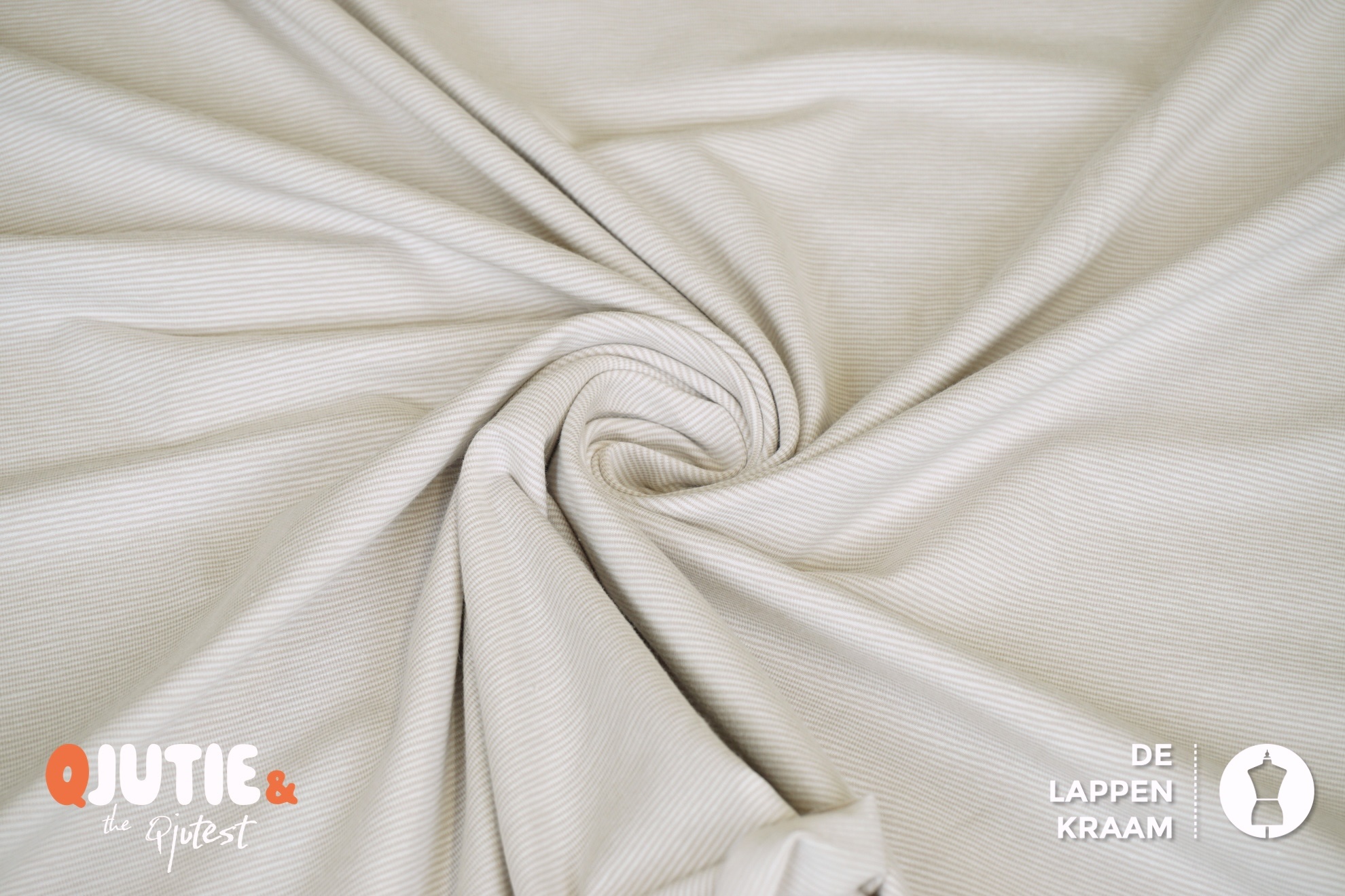 Qjutie & the Qjutest Tricot met dunne horizontale strepen in beige