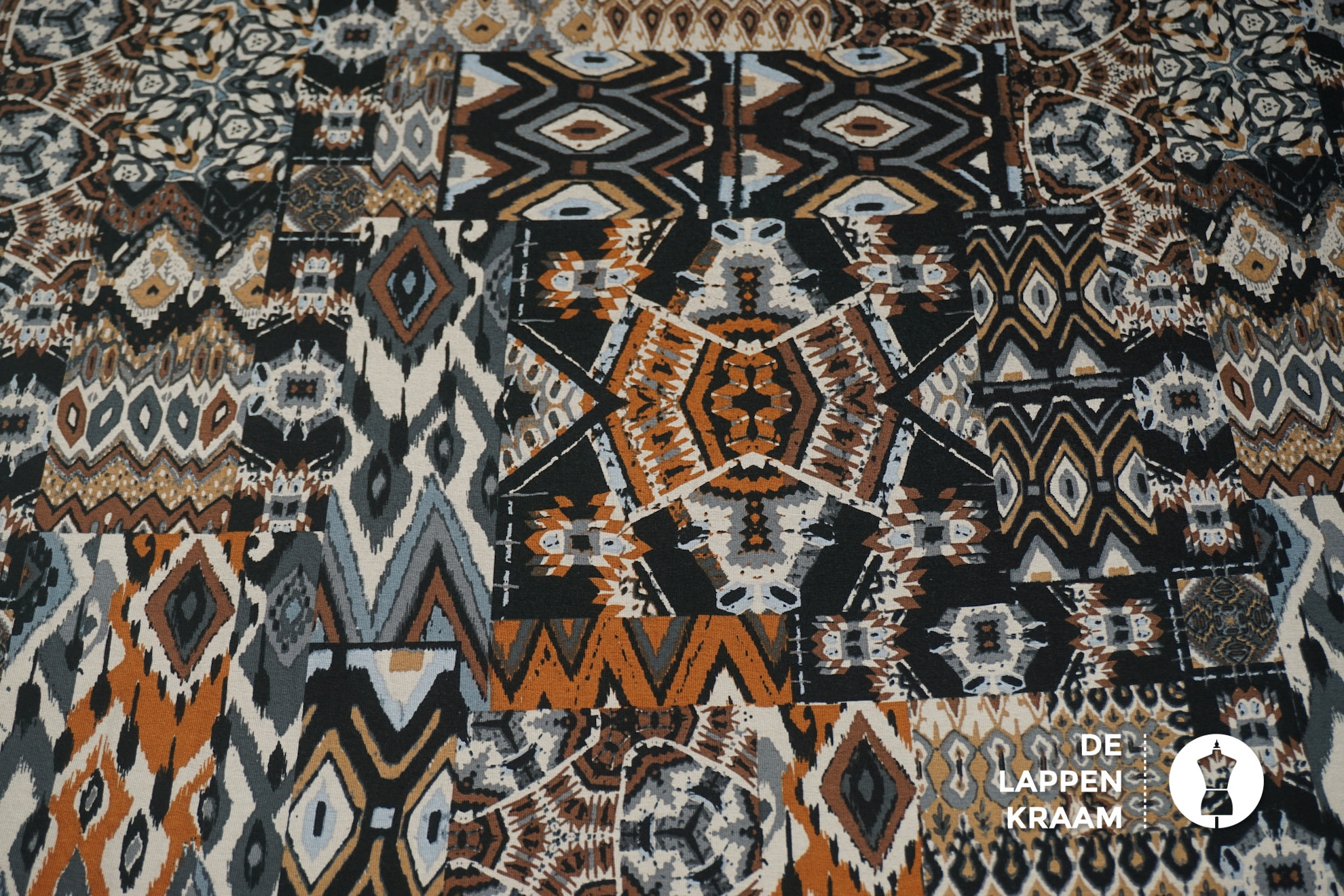 Tricotstof in etnische patchworkprint