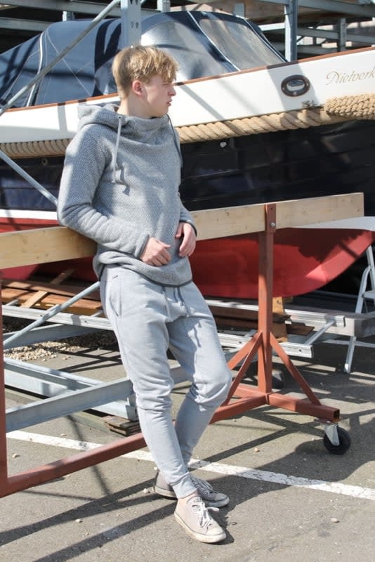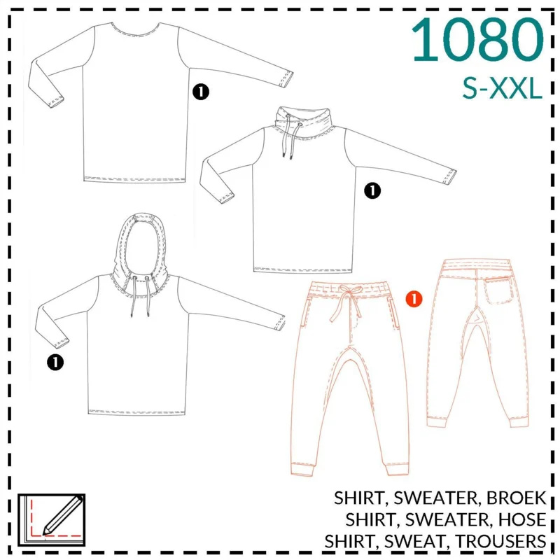 Een patroon voor een joggingbroek met verlaagd kruis, steekzakken, achterzak en elastiek in de taille, een patroon voor een sweater met en zonder capuchon en een shirt met lange mouwen.... Lees meer