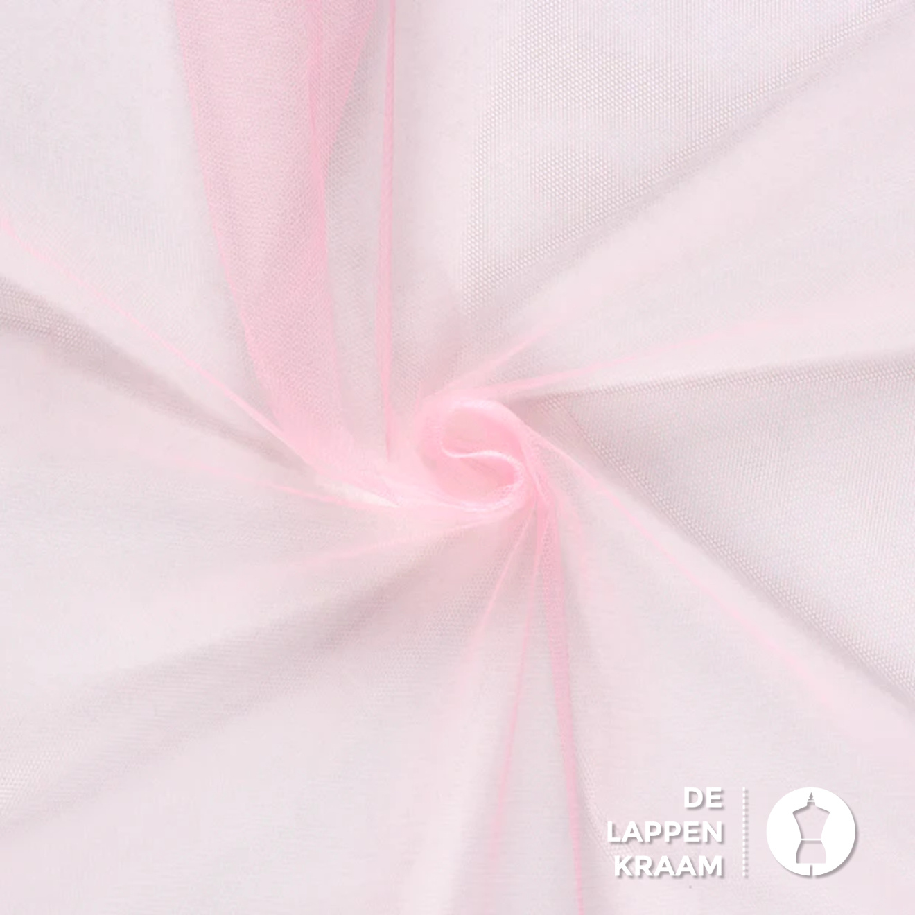 Tule is een mazenweefsel, is licht doorlatend en makkelijk te vormen. De kleur van deze tule stof is babyroze Lees meer