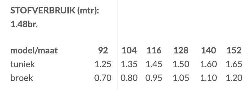 Te maken in maat 92 tm 152