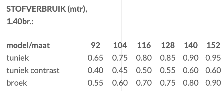 Te maken in maat 92 tm 152