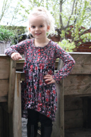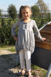 Tuniek met glad bovenlijf en aangerimpelde rok, en een tregging met steekzakken. Lees meer
