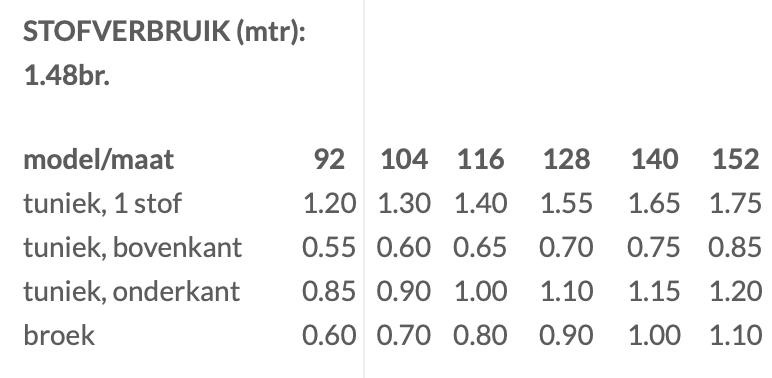 Te maken in maat 92 tm 152