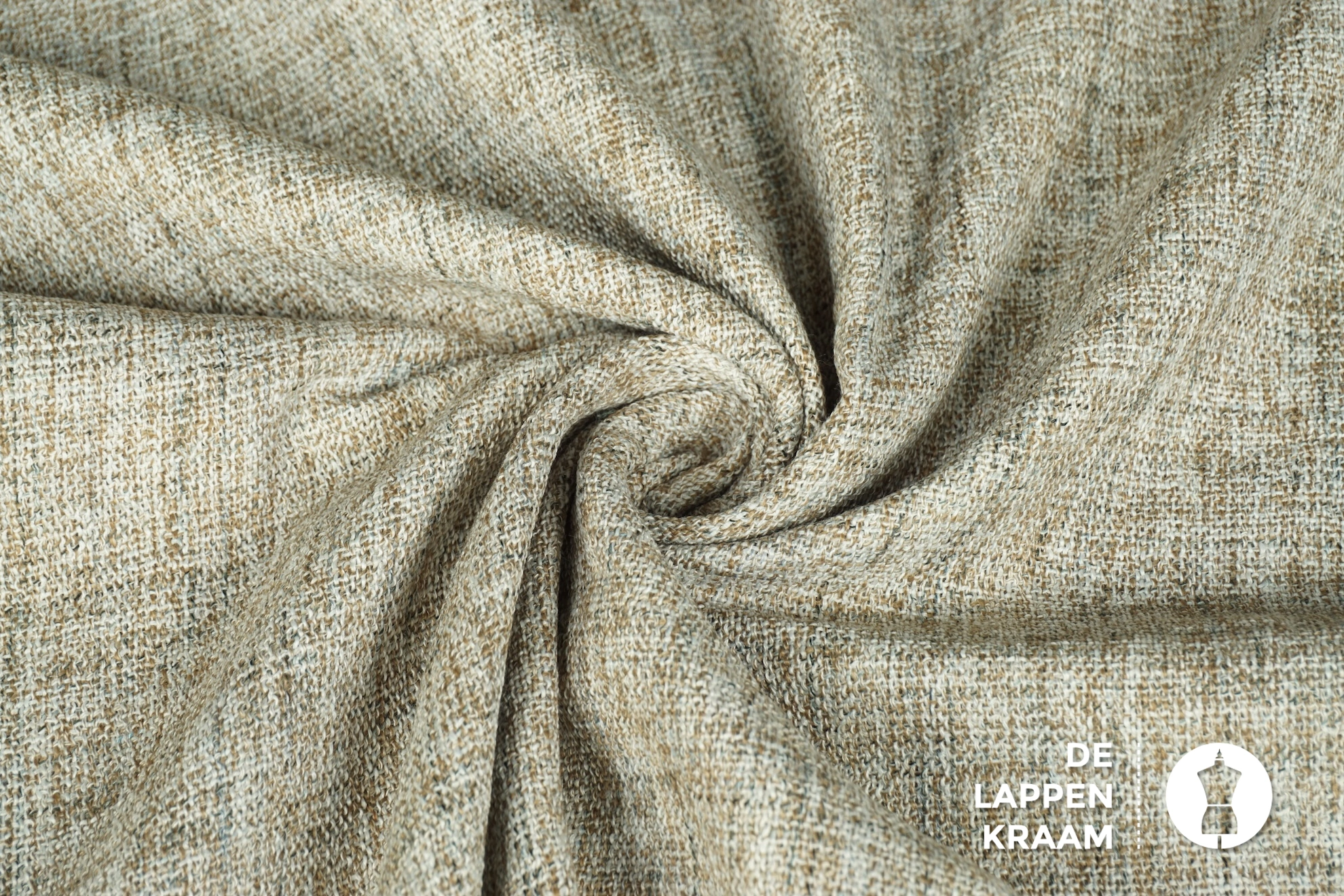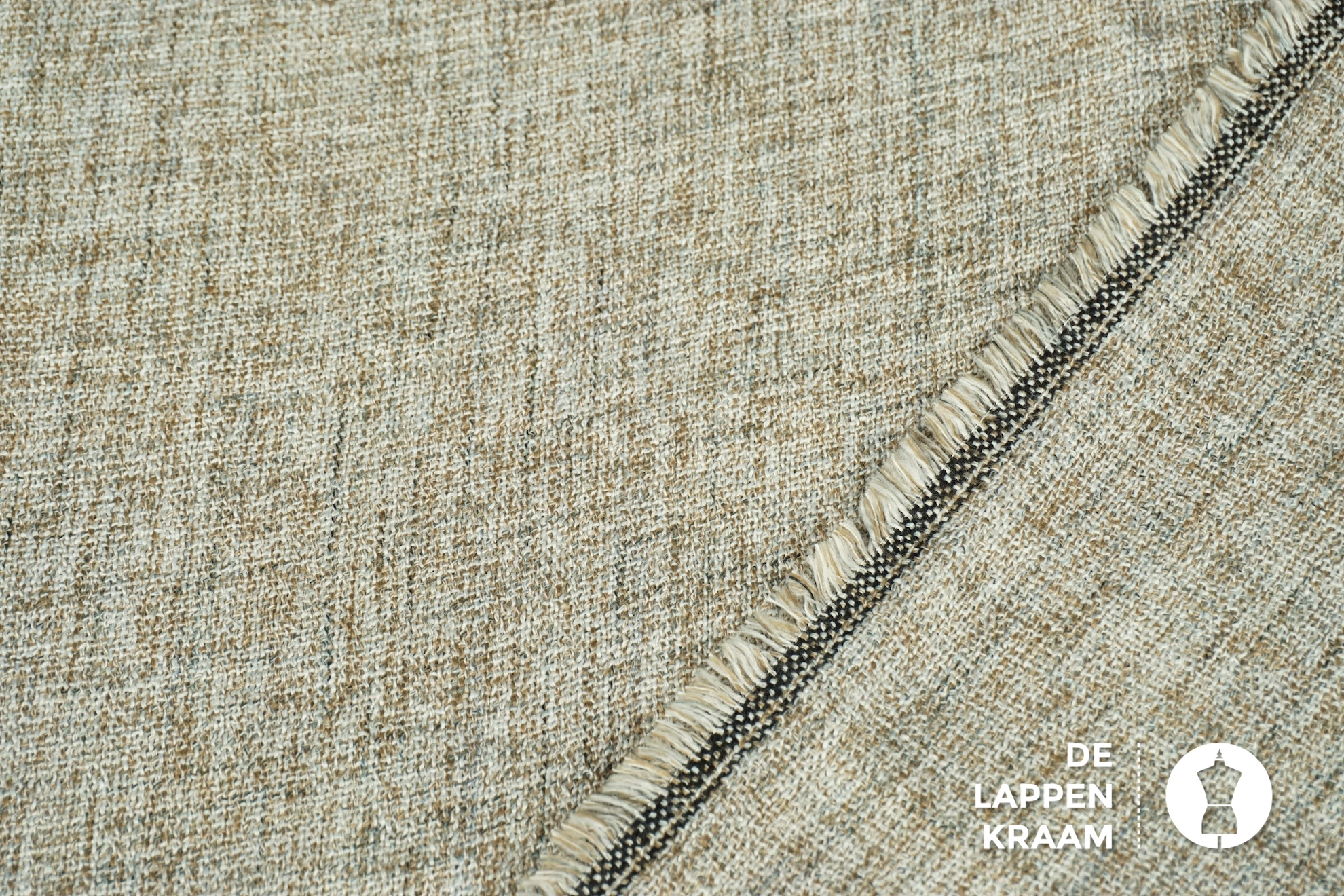 Prachtige, grof geweven tweed in tinten als ecru, beige en hier en daar een tikkeltje grijs. Mooi voor een broek, colbert of damespak.... Lees meer