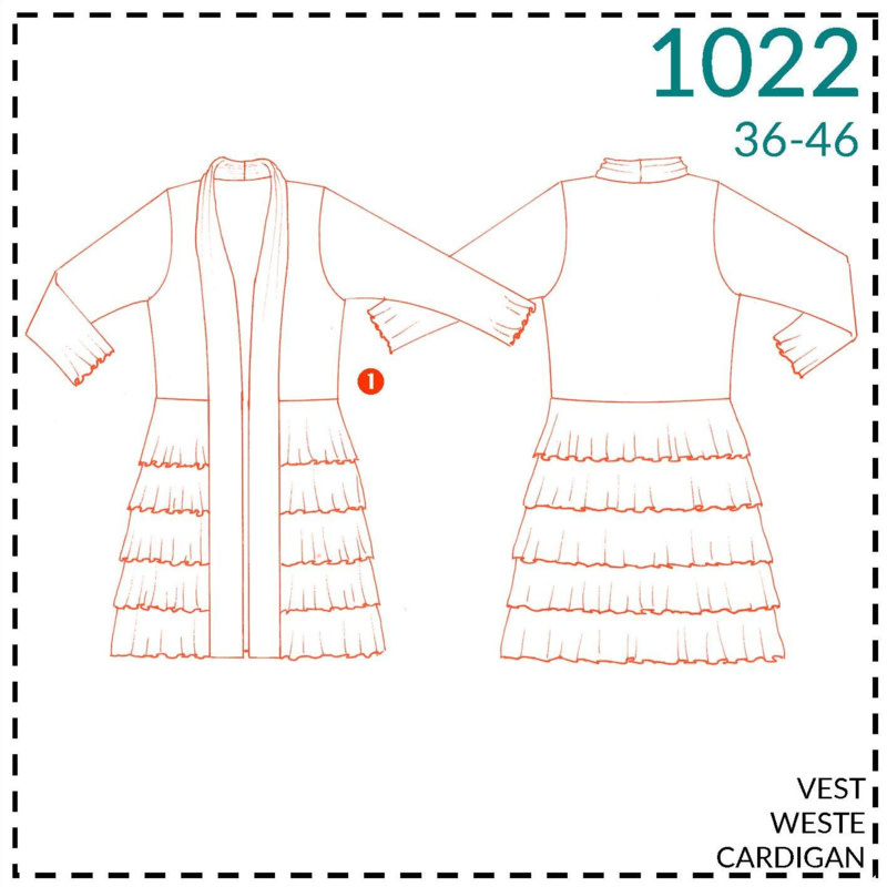 Vest met grote sjaalkraag en ruches. Te maken in maat 36 - 46 met moeilijkheidsgraad 1: makkelijk