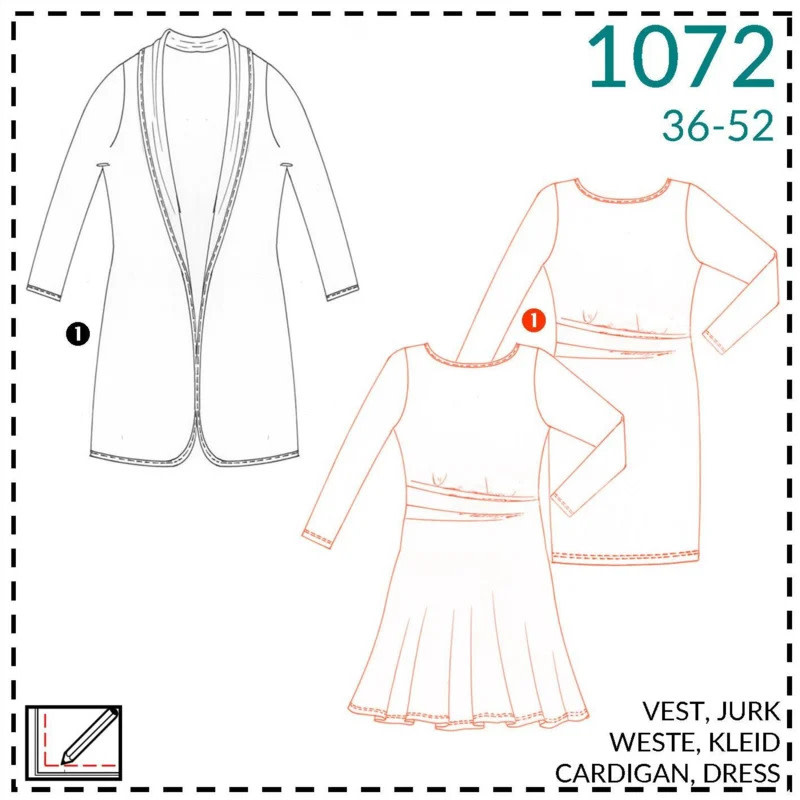 Patroon van It's A Fits voor een jurk en een lang vest. Dit patroon heeft 3 variaties; 2 voor een jurk en 1 voor een lang vest.