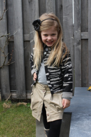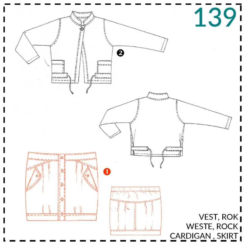 Vestje met opstaande kraag, zakken en tunneltjes en een rokje met knoopsluiting Lees meer