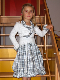 Kort wikkelvestje met ruches en een ballonvormige rok met beed stuk aan de bovenkant waardoor het ook als jurkje kan worden gedragen... Lees meer