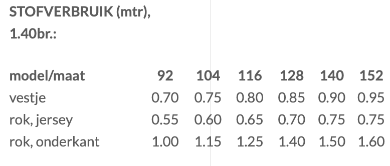 Te maken in maat 92 tm 152