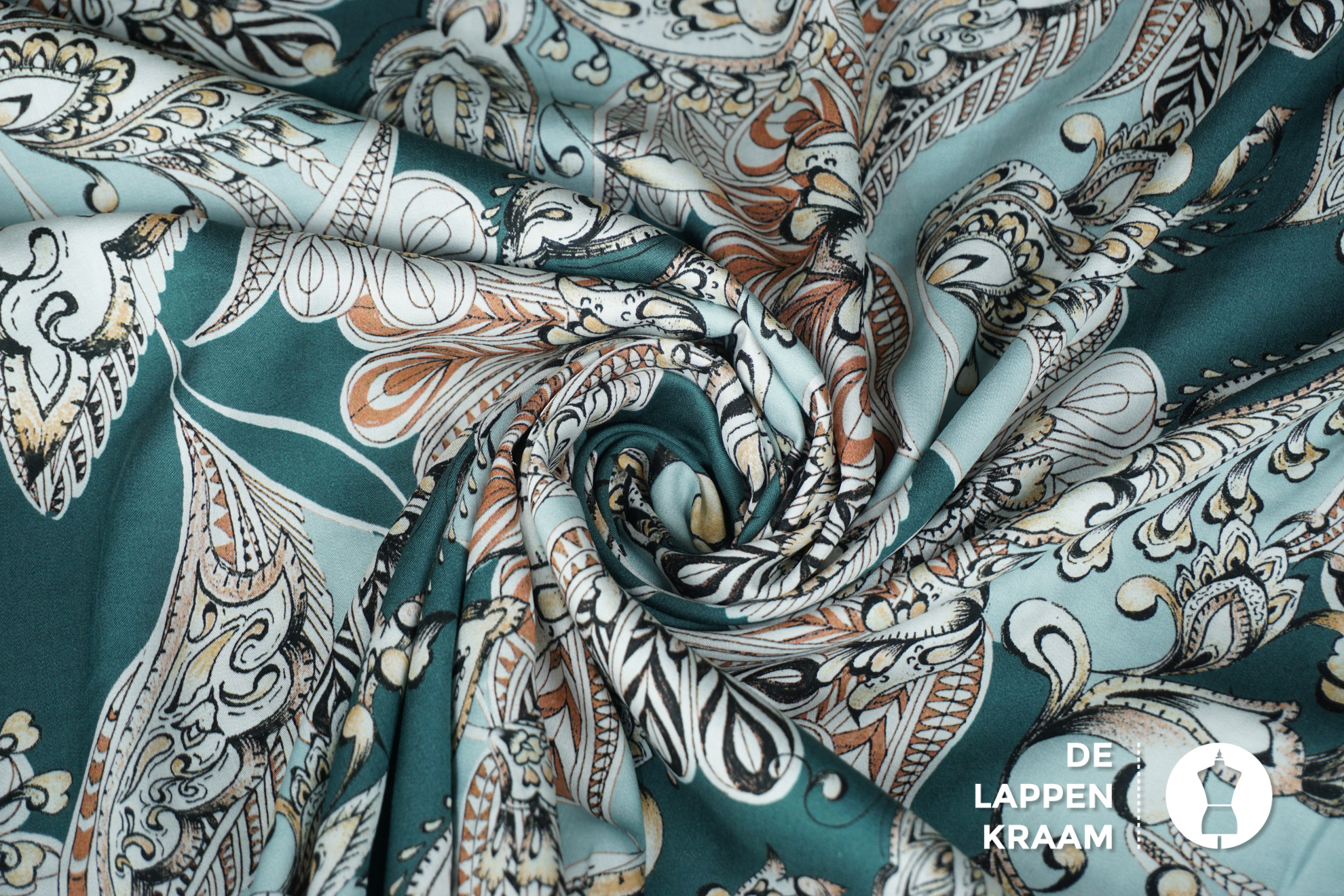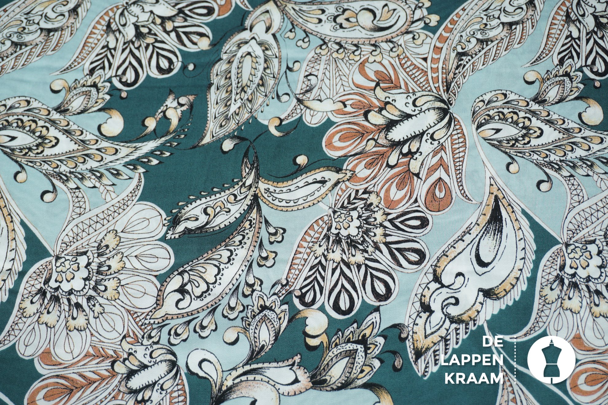 Viscose stof donker oudgroen met paisley