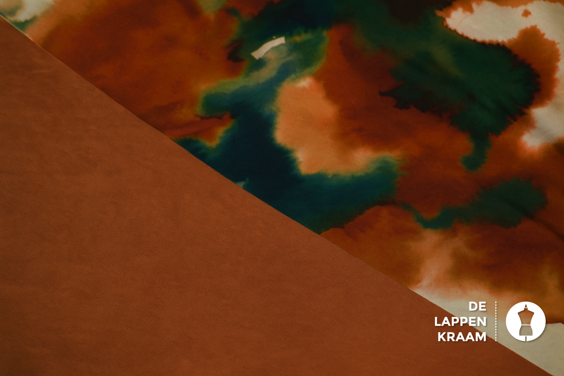 A la Ville Viscose met gevlekt bloemdessin in bruin- en groentinten