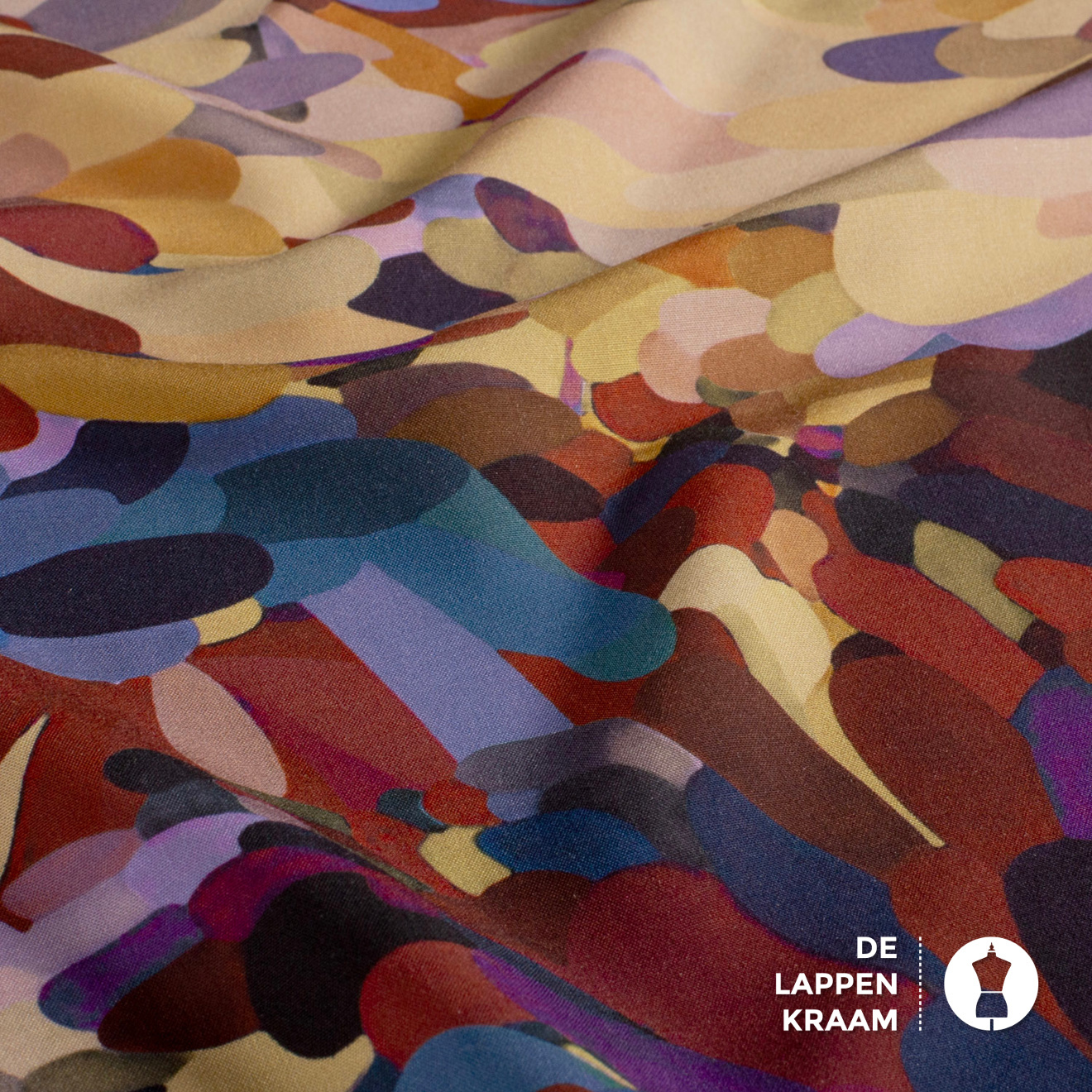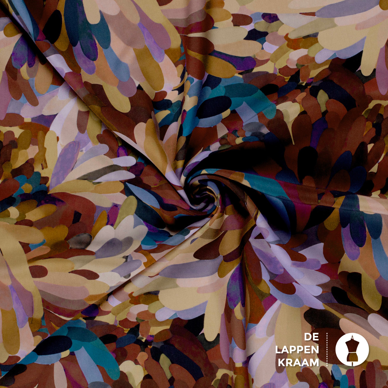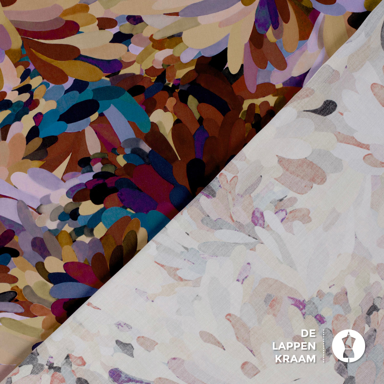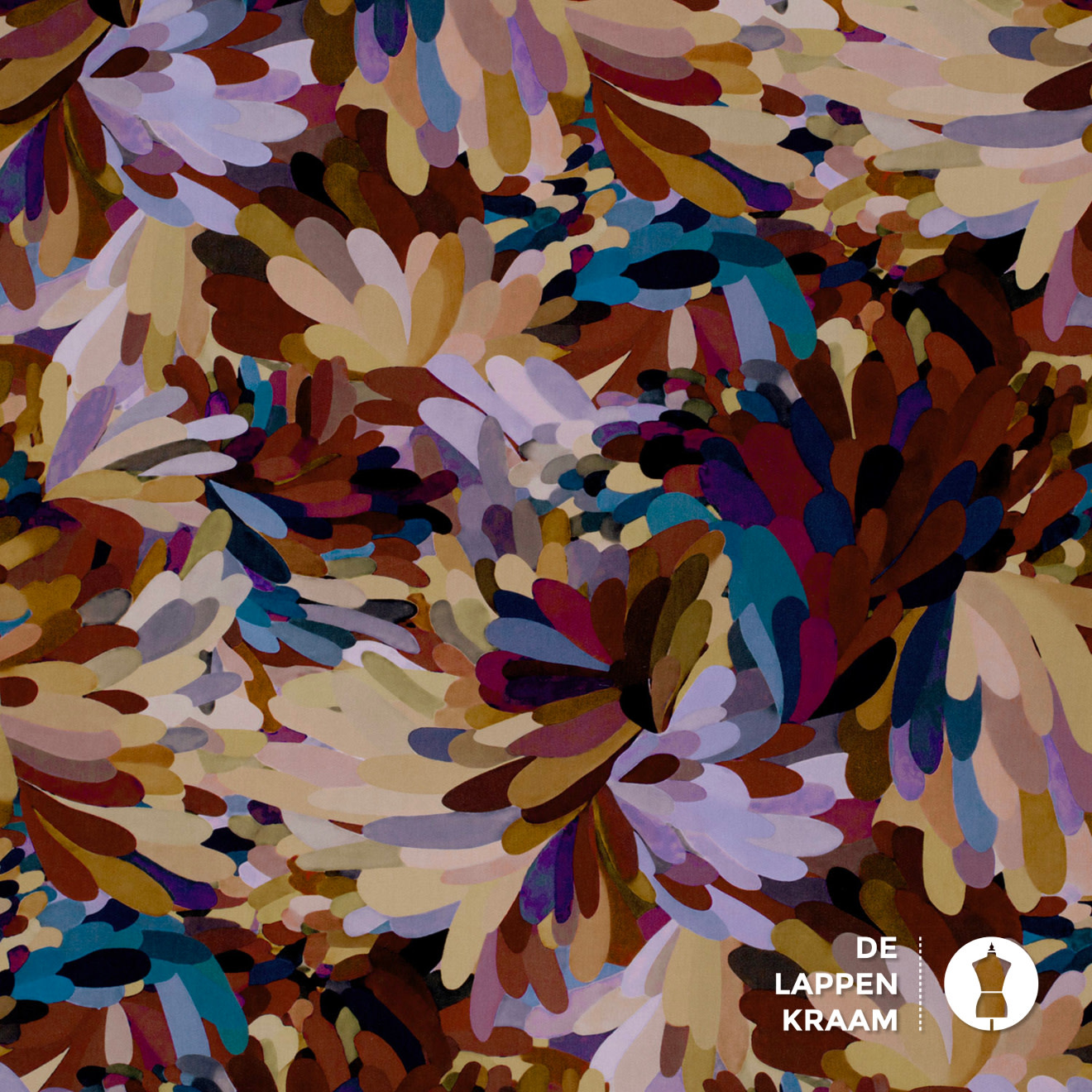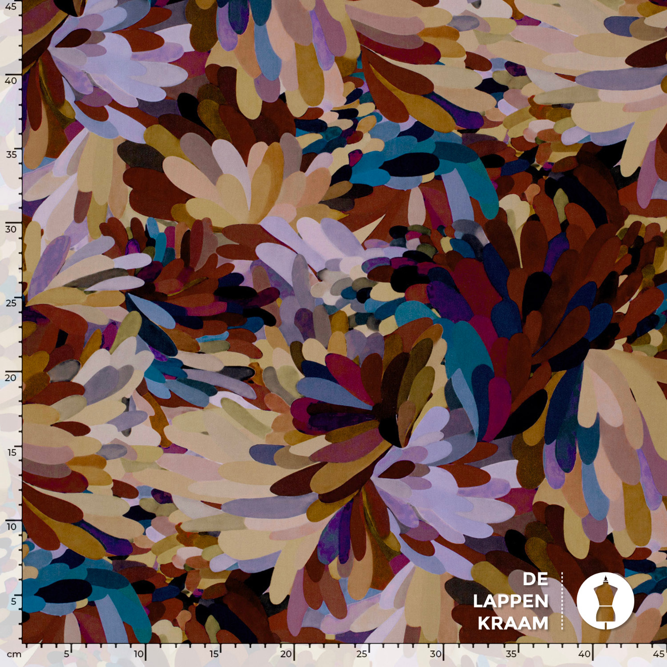Viscose met gestyleerde bloemenprint in rood en bruintinten