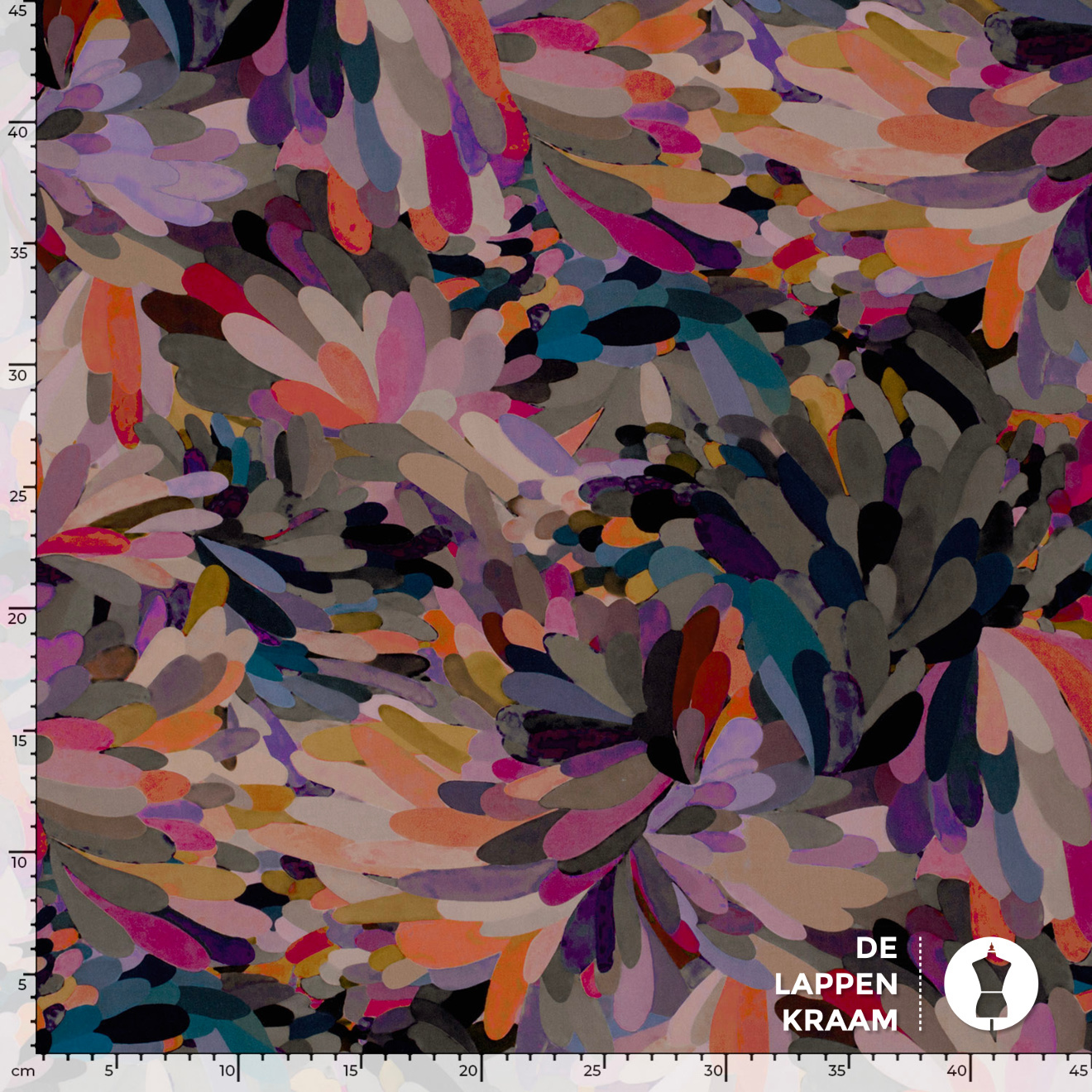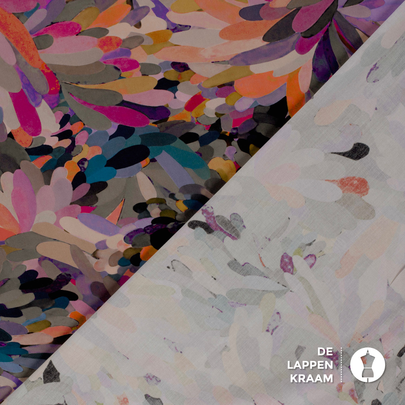 Viscose stof met gestyleerde bloemenprint in rozetinten