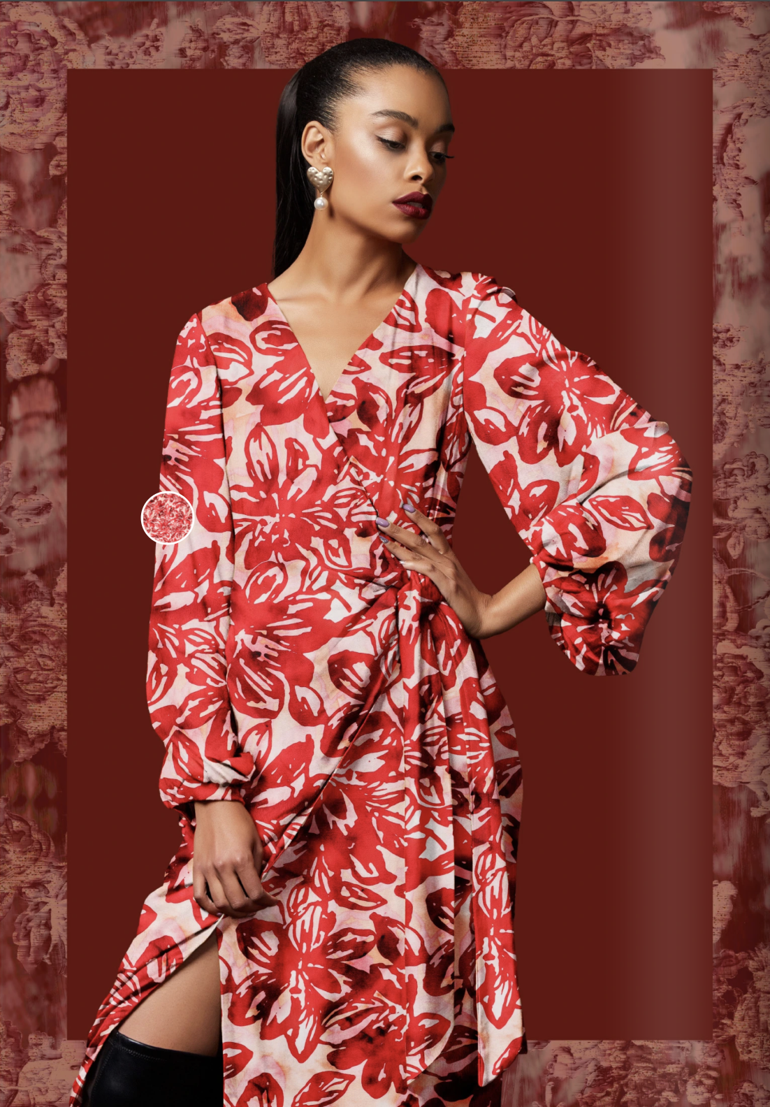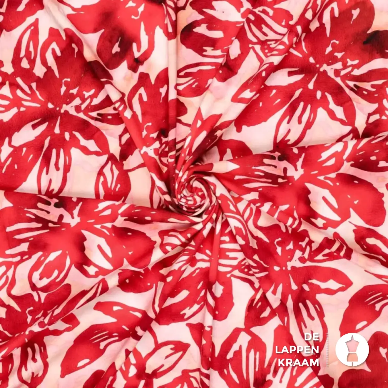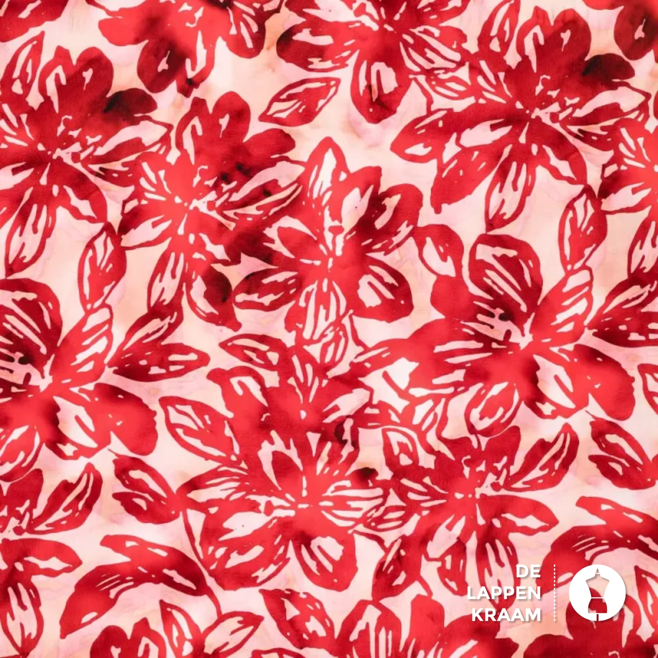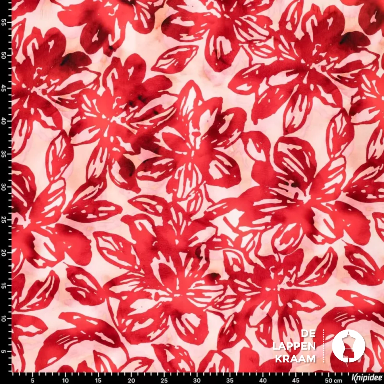 Marlie's Choice Viscose popeline stof met rode bloemenprint