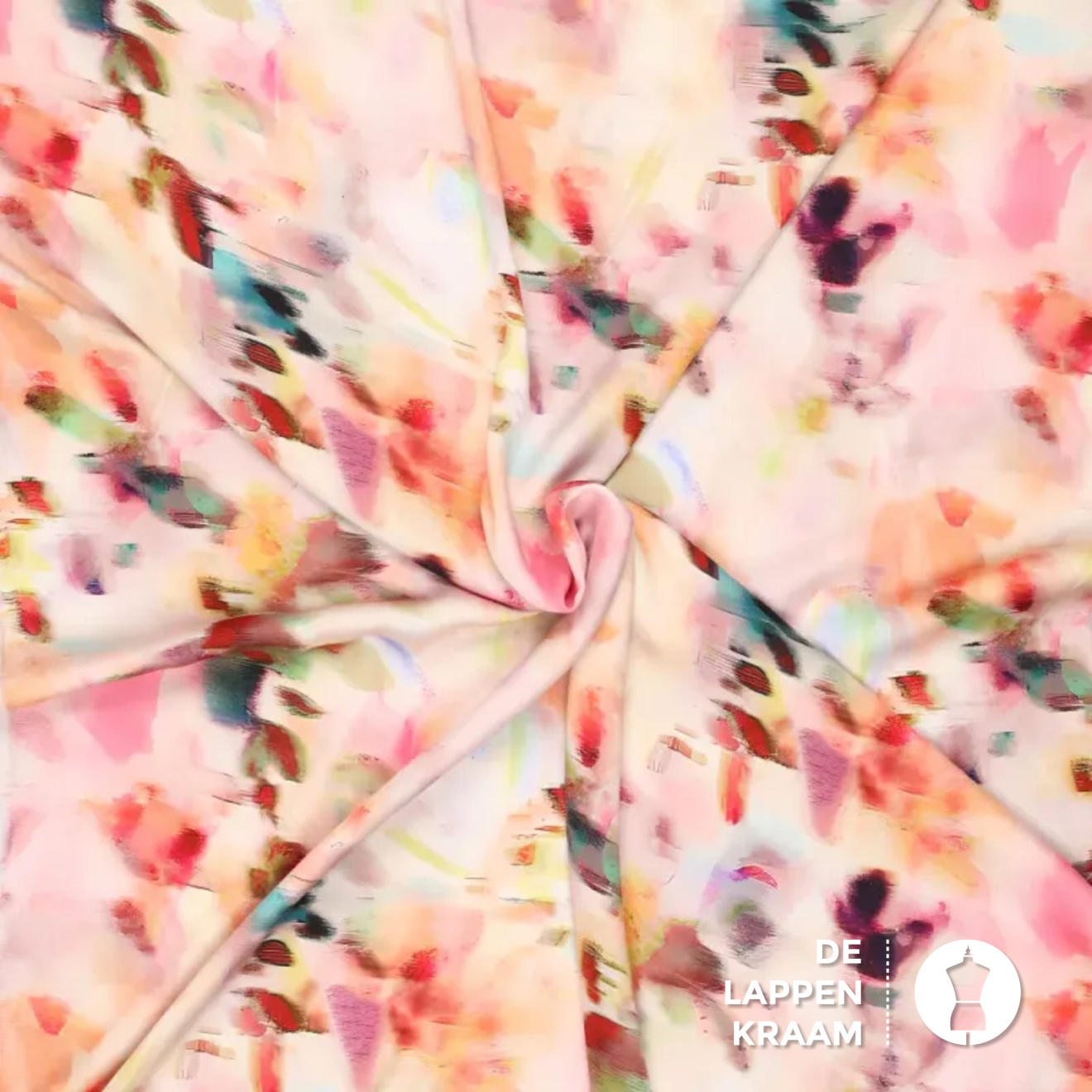 De viscose is in satijnbinding geweven, hierdoor ontstaat een hele lichte, subtiele glans. Mooi voor een jurk of blouse of een heel pak!... Lees meer
