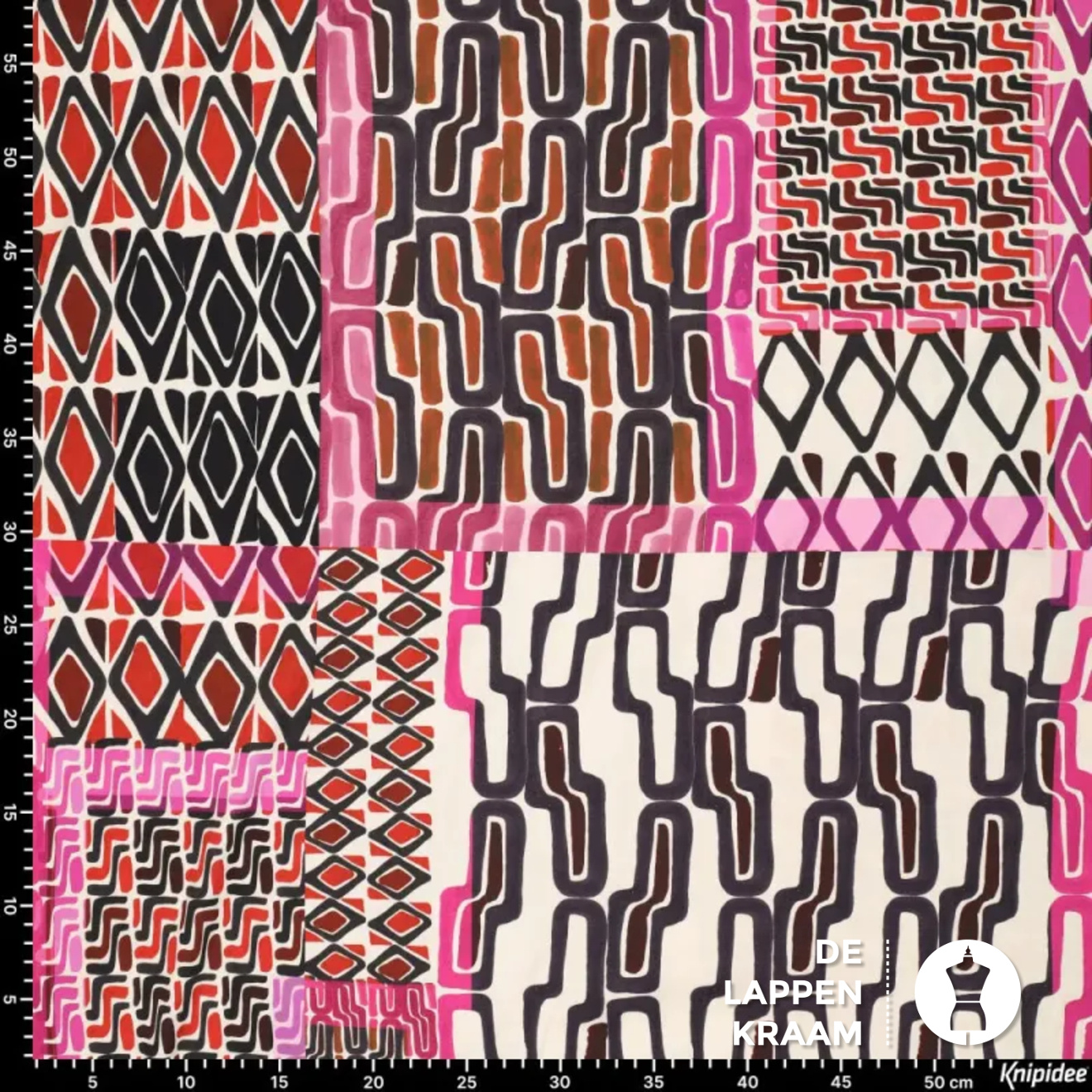 Deze viscose voelt heerlijk zacht aan en heeft door een kleine toevoeging van elastaan een lekkere rek in de breedte. De print bestaat uit allerlei abstracte vlakken met een etnische print in roze met donkerblauw en rood.... Lees meer