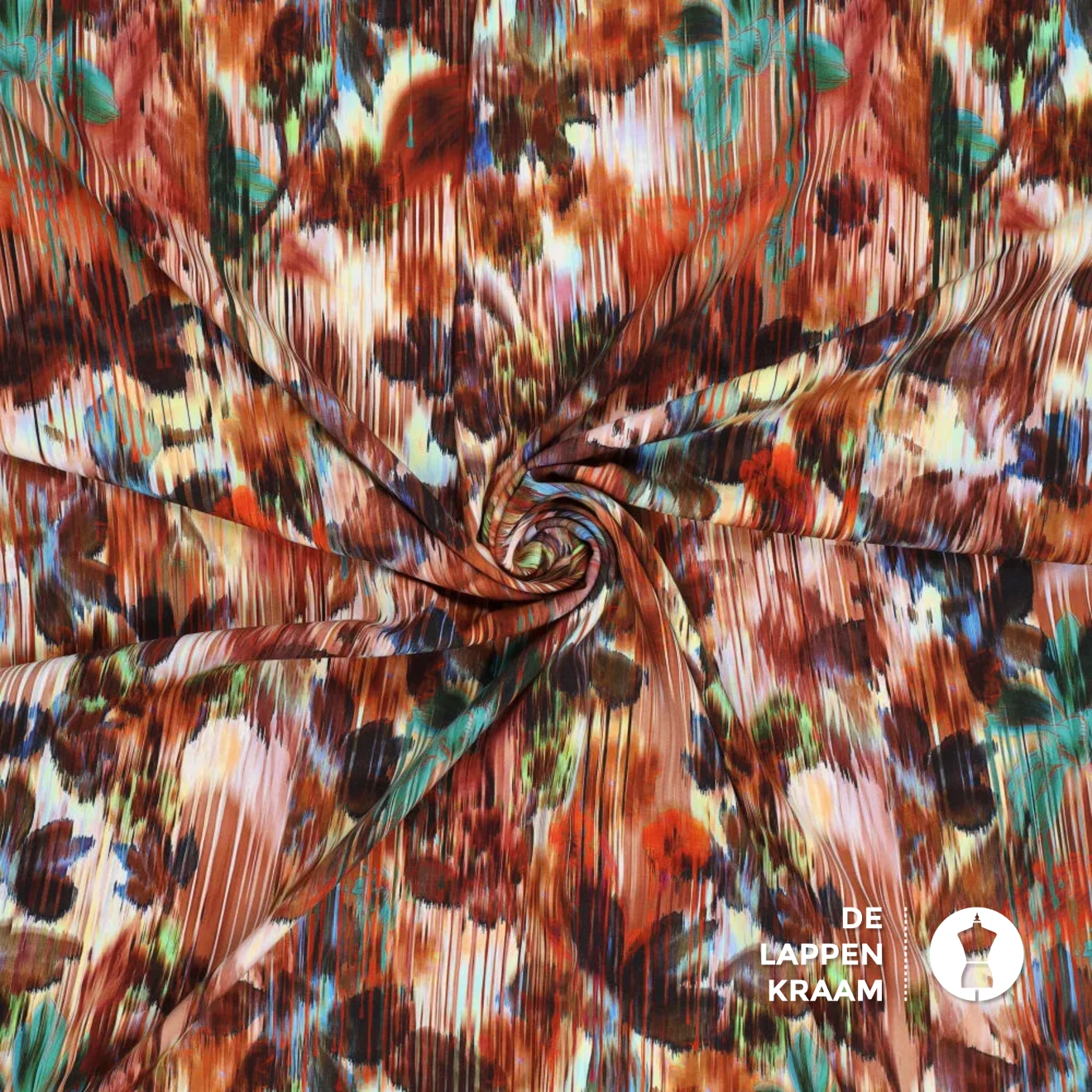 Viscose met een stretch in de breedte met een vervaagde bloemenprint in bruin en roodtinten. Lees meer