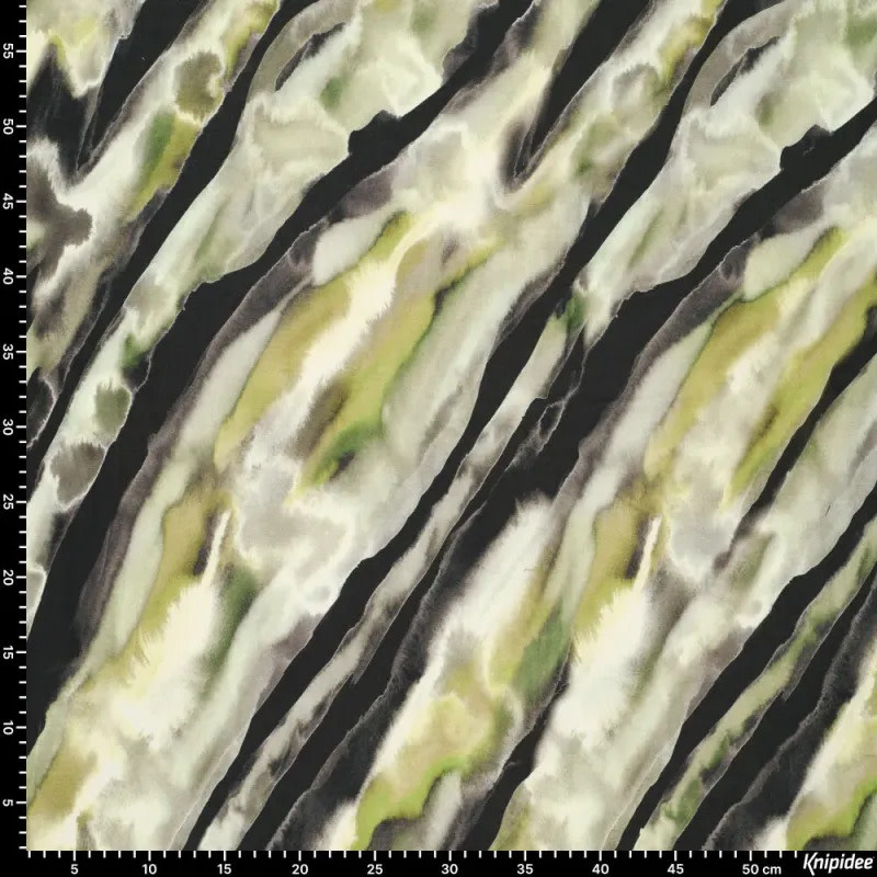 Viscose tricot met diagonaal vlekkenpatroon in groen met zwart