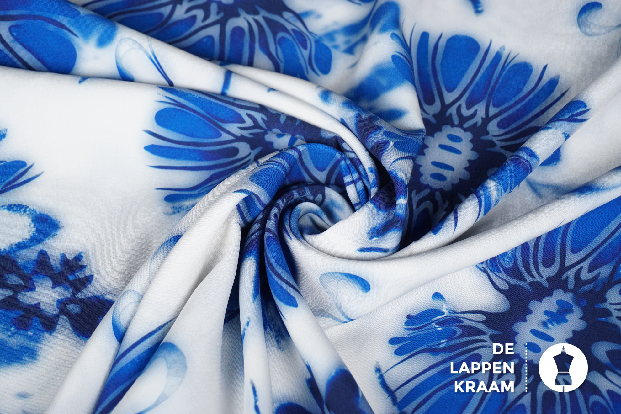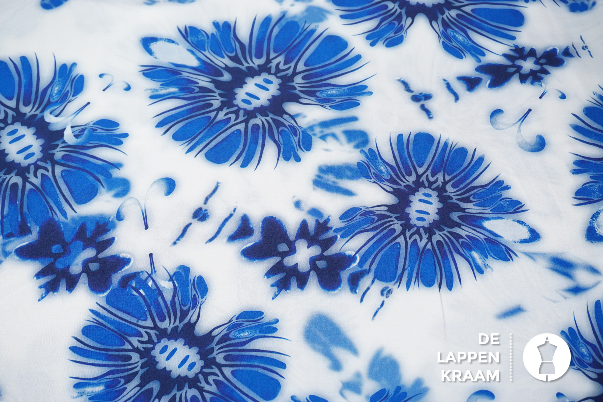 A la Ville Viscose stof wit met kobaltblauwe bloemen