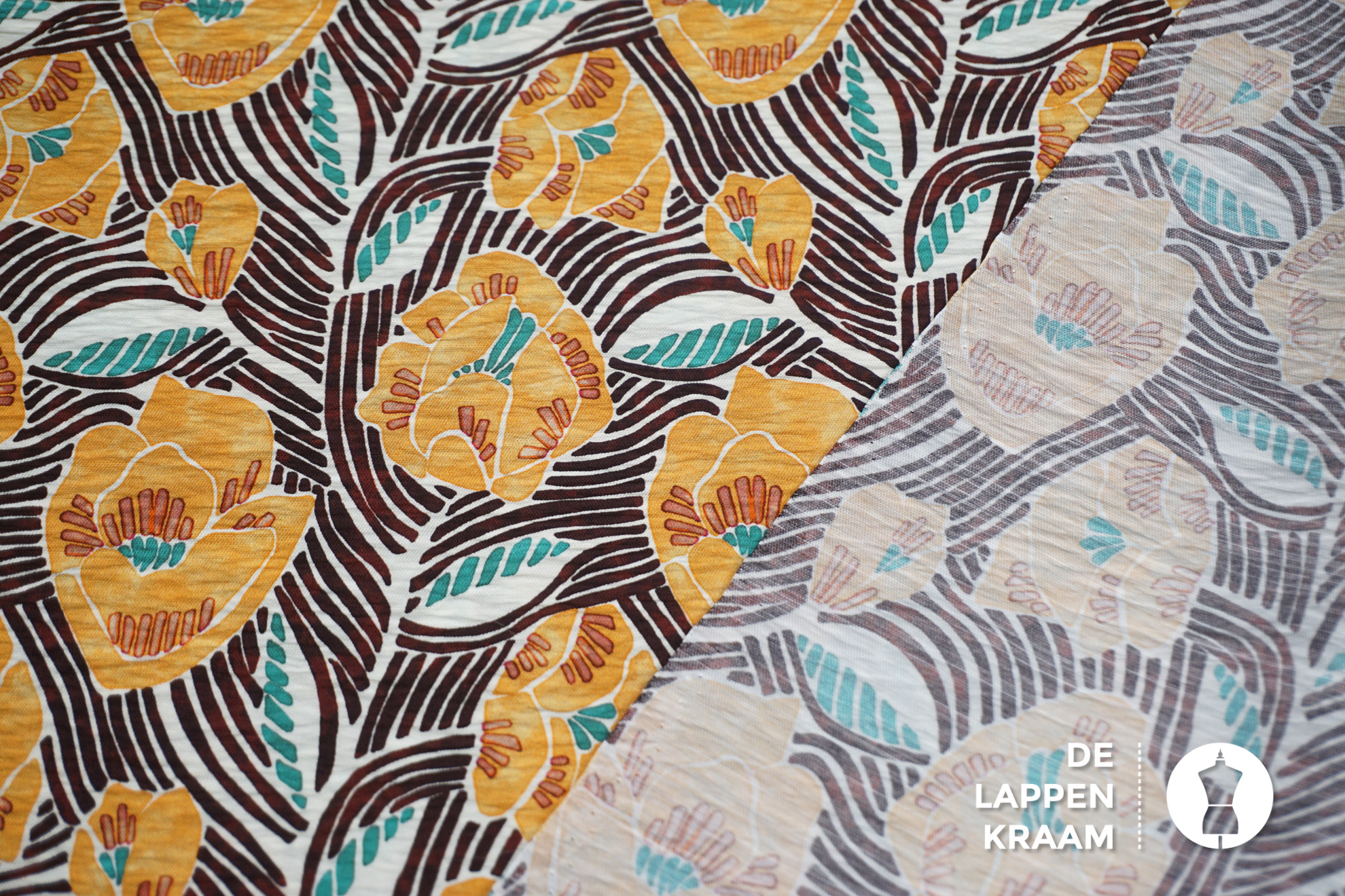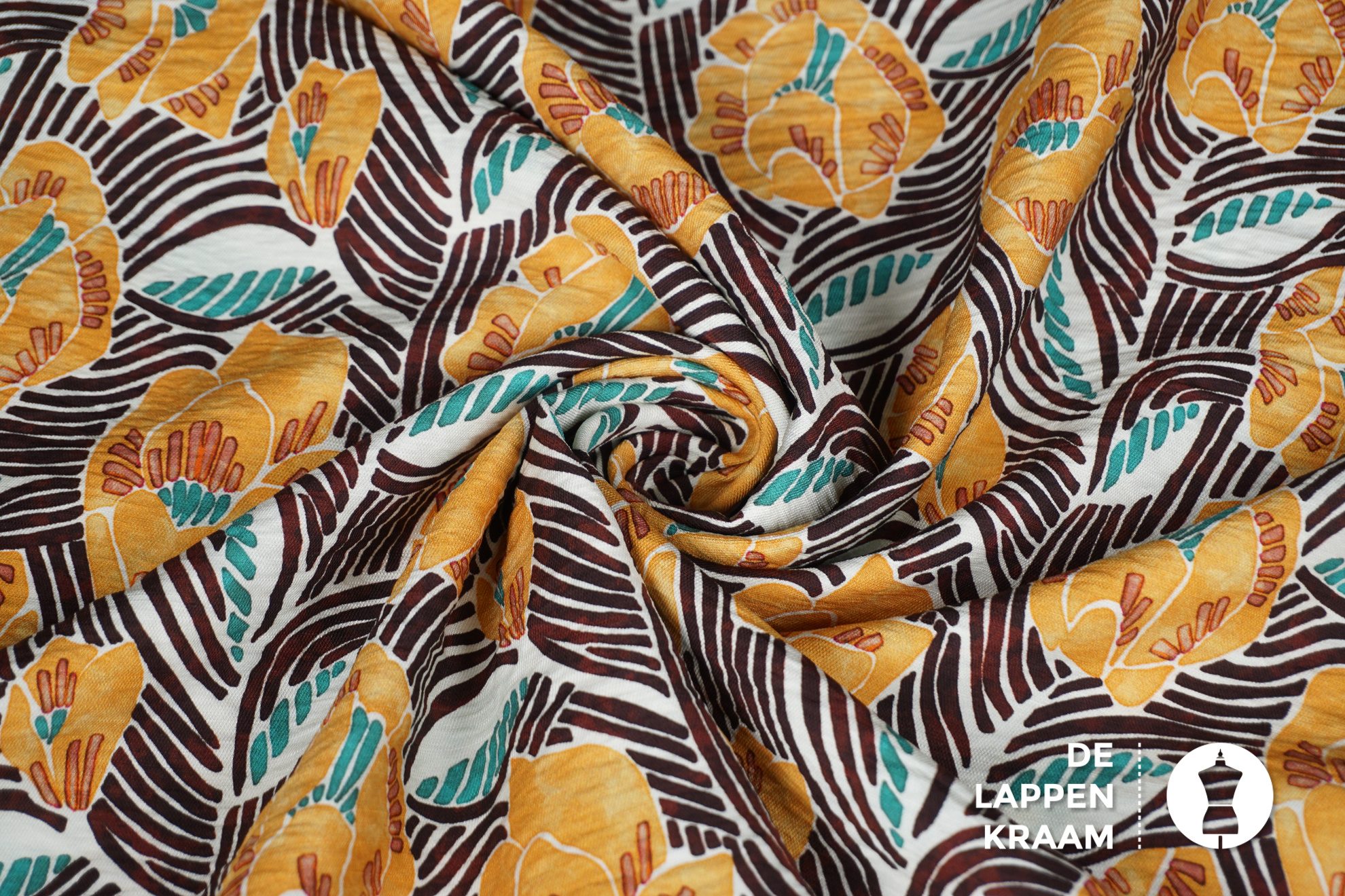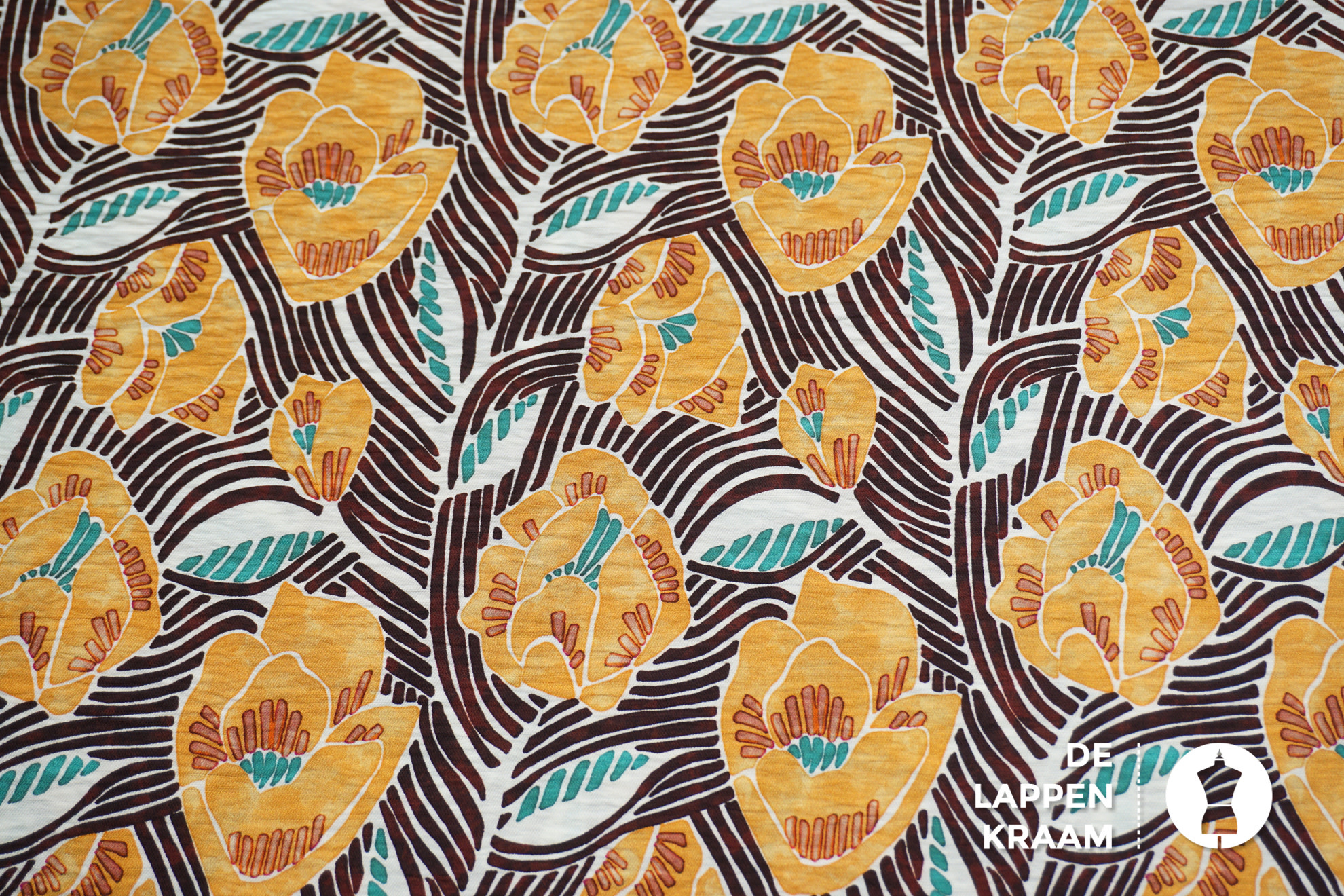 A la Ville Viscosemix stof met retro bloemenprint geel