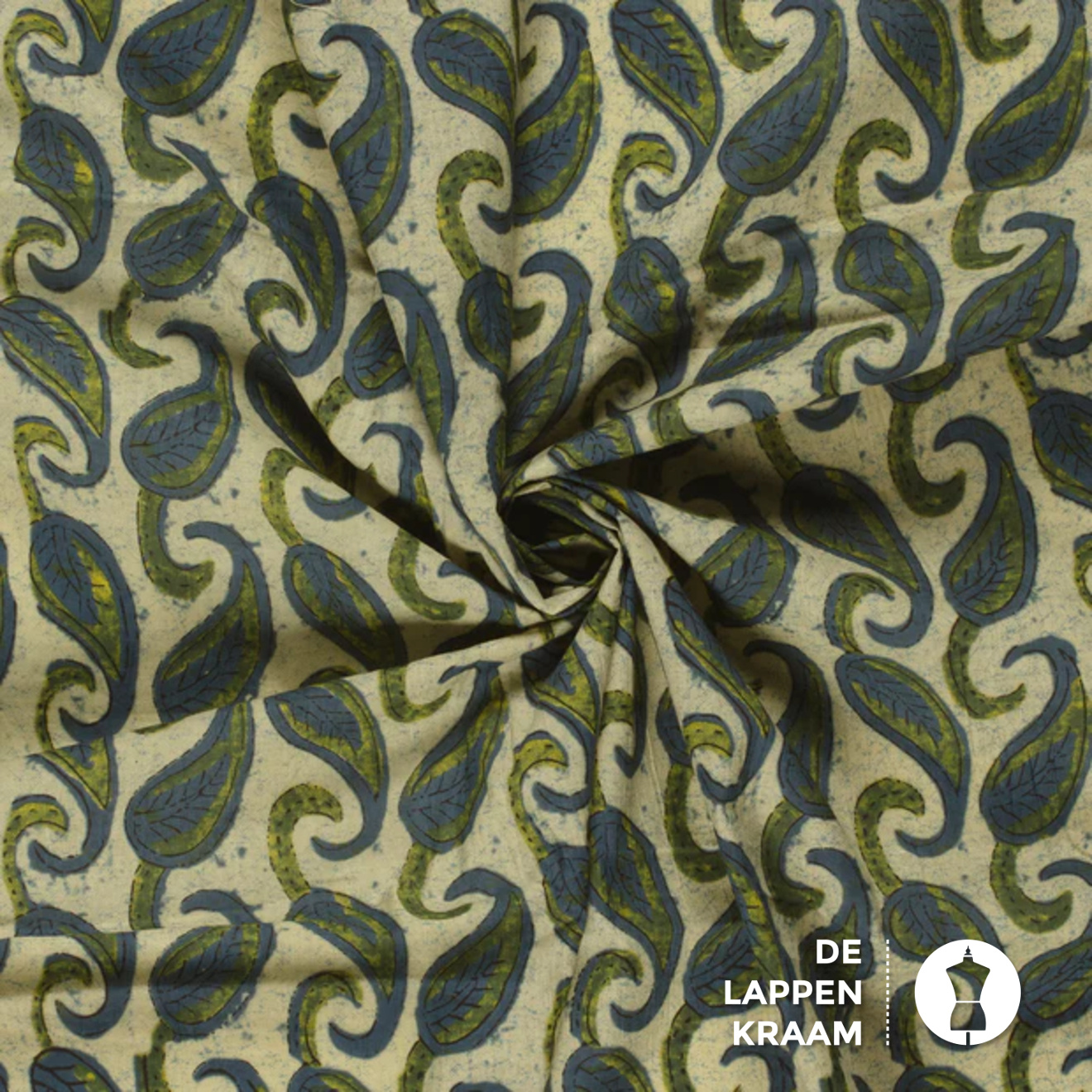 Egyptisch katoen groen met blauwe paisley