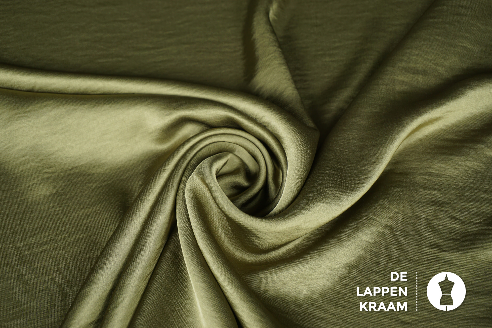 Heerlijk soepele satijn in goud. In tegenstelling tot wat je vaak ziet is deze satijn niet helemaal glad, maar heeft het een golvende structuur. De satijn heeft een lichte stretch in de breedte.... Lees meer