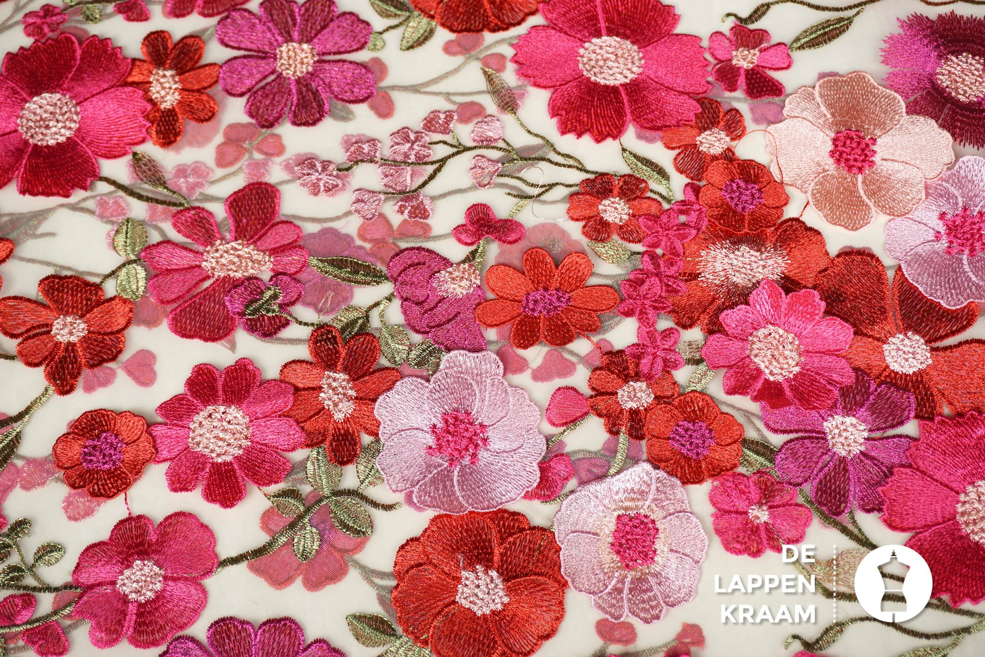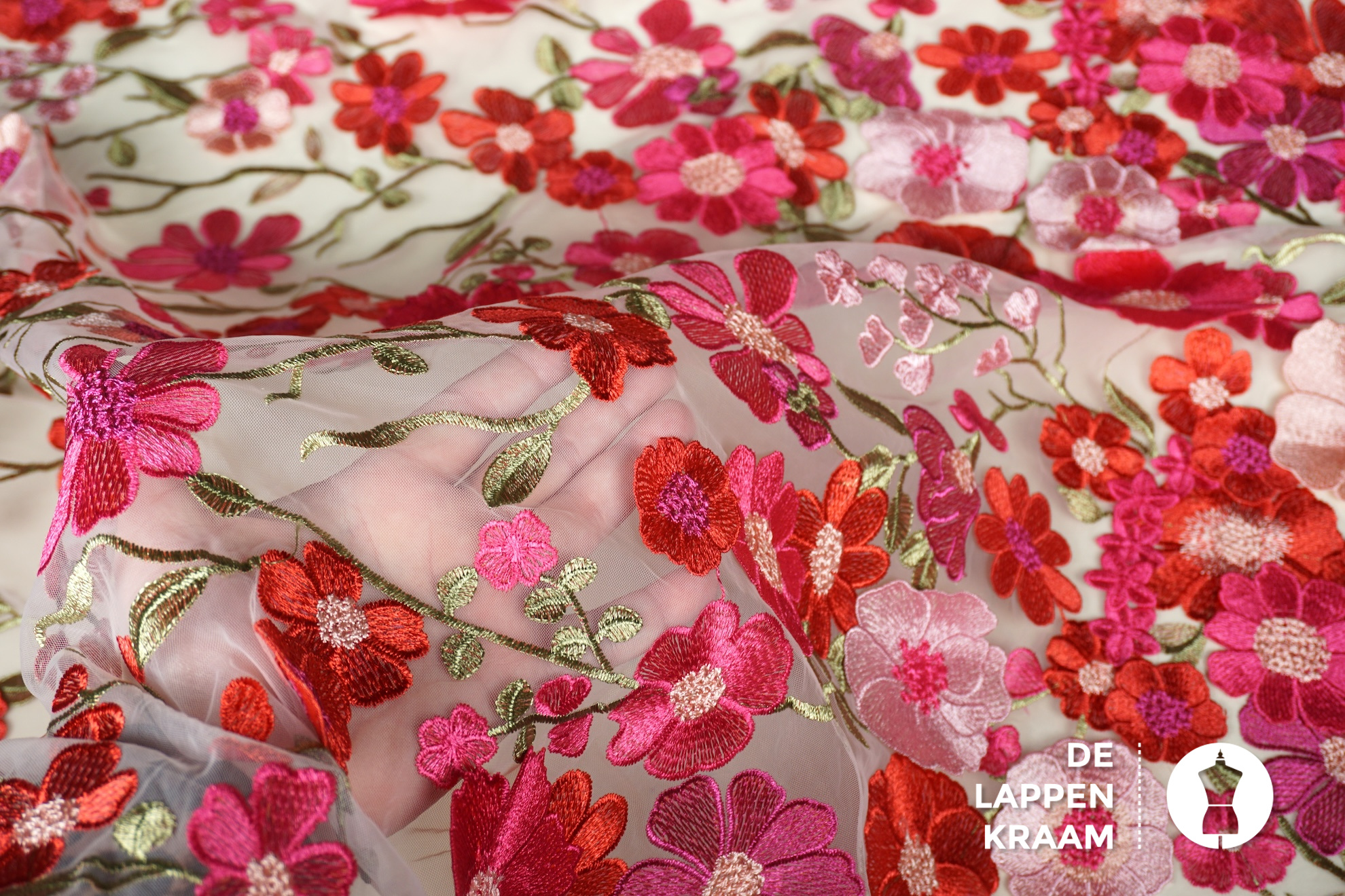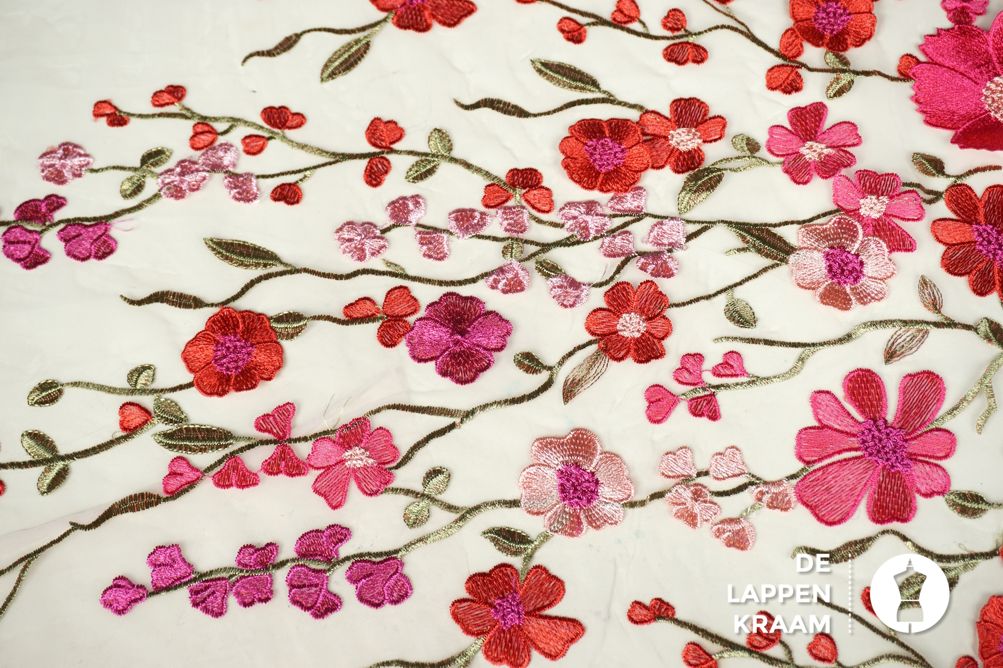 A la Ville Zachte tule met borduring in bloemdessin
