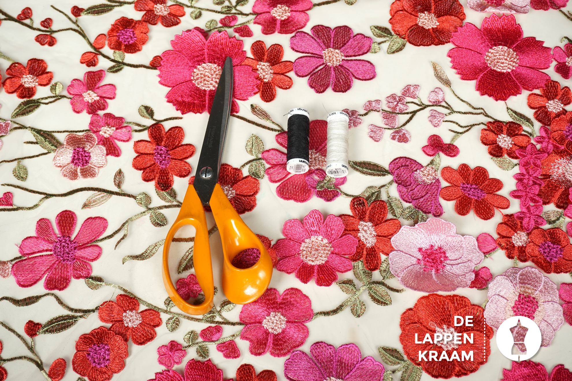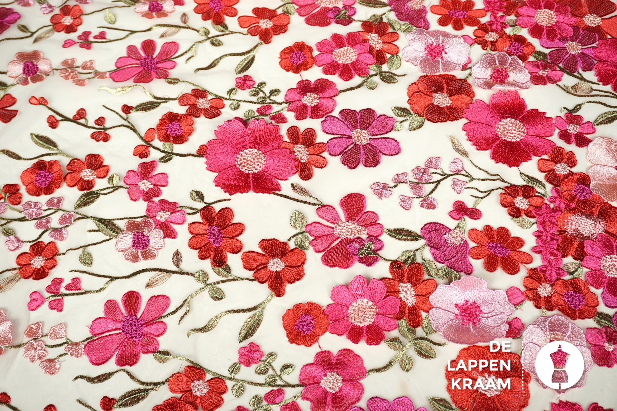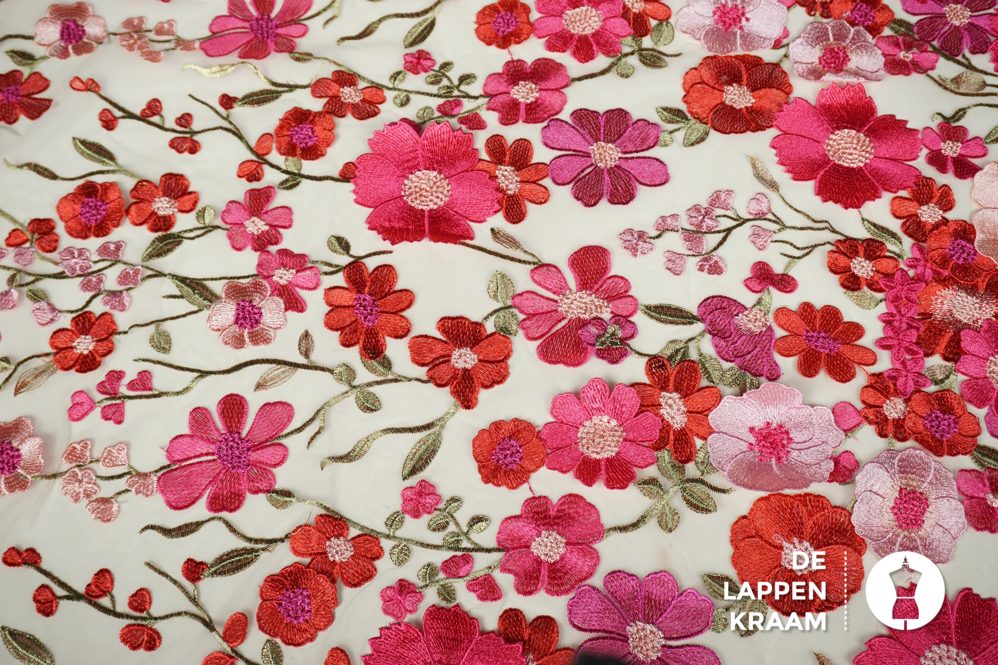 A la Ville Zachte tule met borduring in bloemdessin