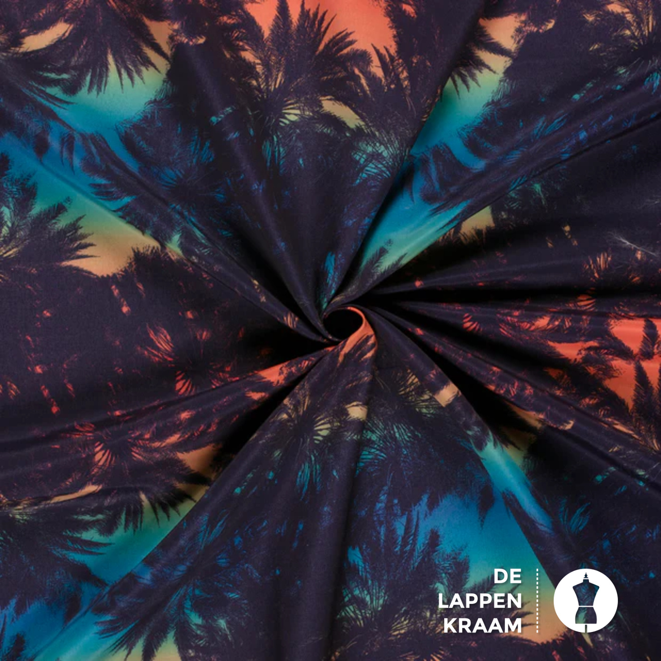 Deze stof is speciaal ontworpen voor het maken van zwembroeken. Door de quick dry is je broek na een duik zo weer droog. De ondergrond een overloop van blauw naar oranje en heeft een dessin van grote donkerblauwe palmbomen.... Lees meer